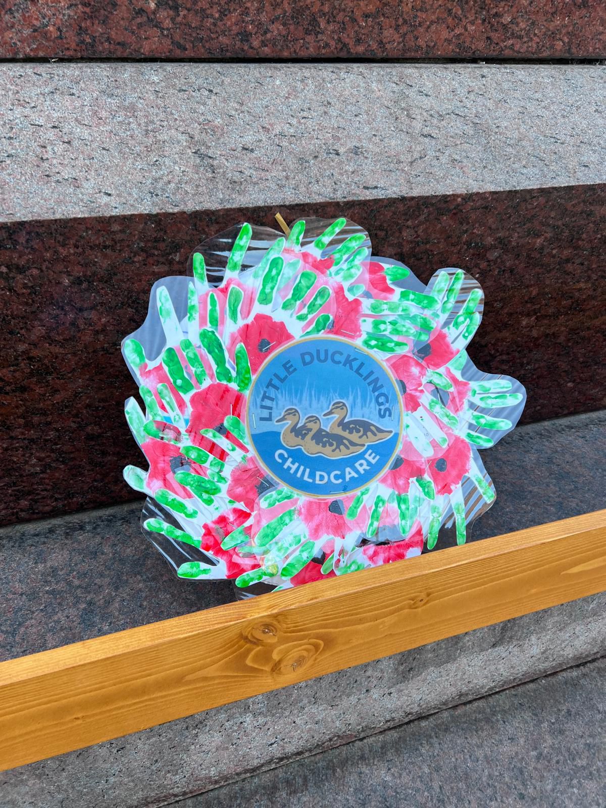 Little Ducklings children made a wreath of poppies and we placed it by the monument in town.
