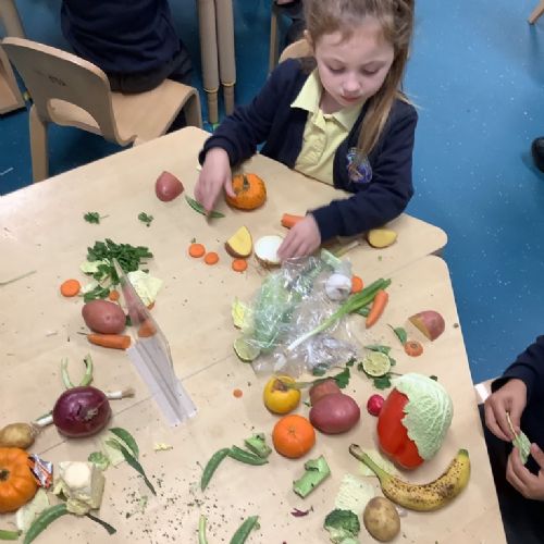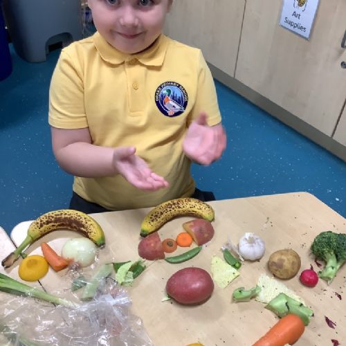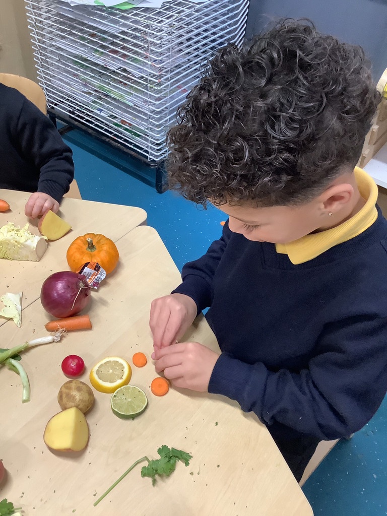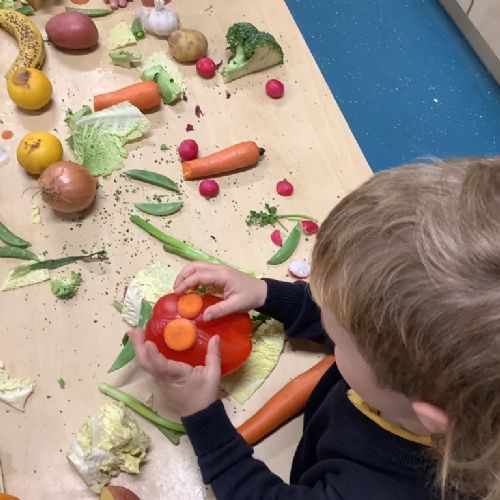 Our class has been learning all about the fascinating artist Giuseppe Arcimboldo, famous for creating imaginative portraits made entirely from fruits, vegetables, flowers, and other objects! The children loved exploring his unique style and discussing how everyday items can be used to create something completely new.
