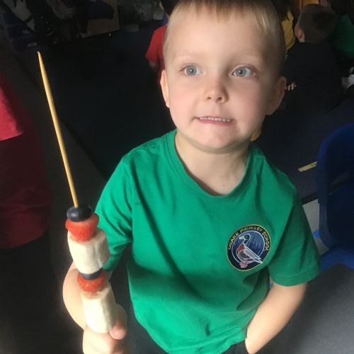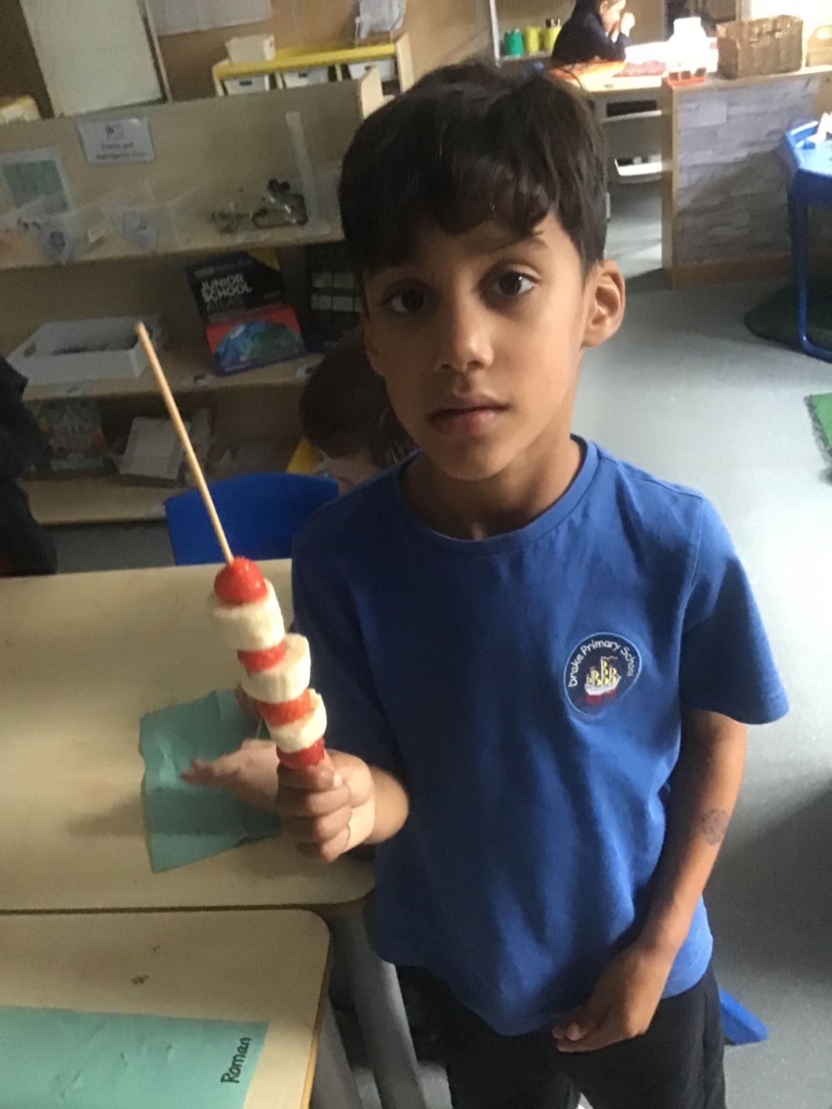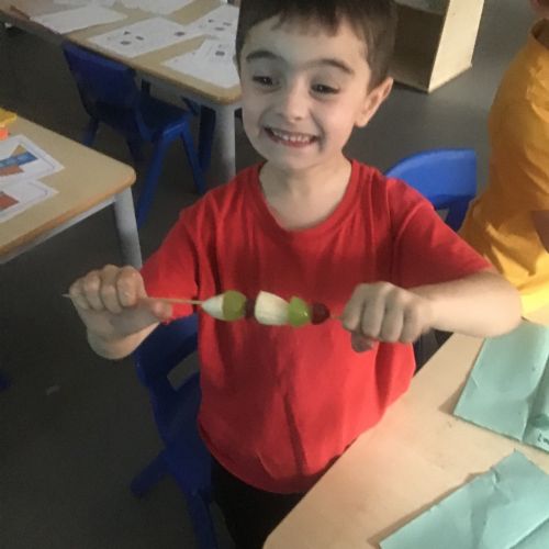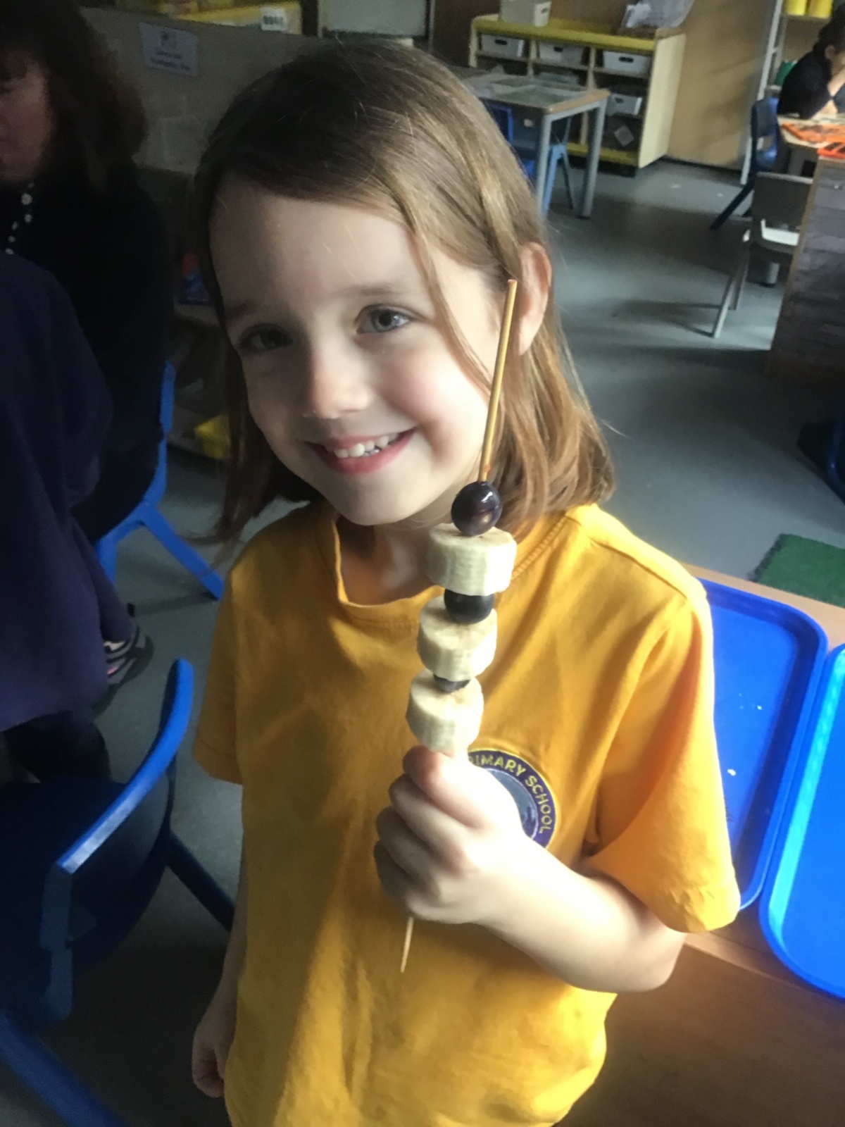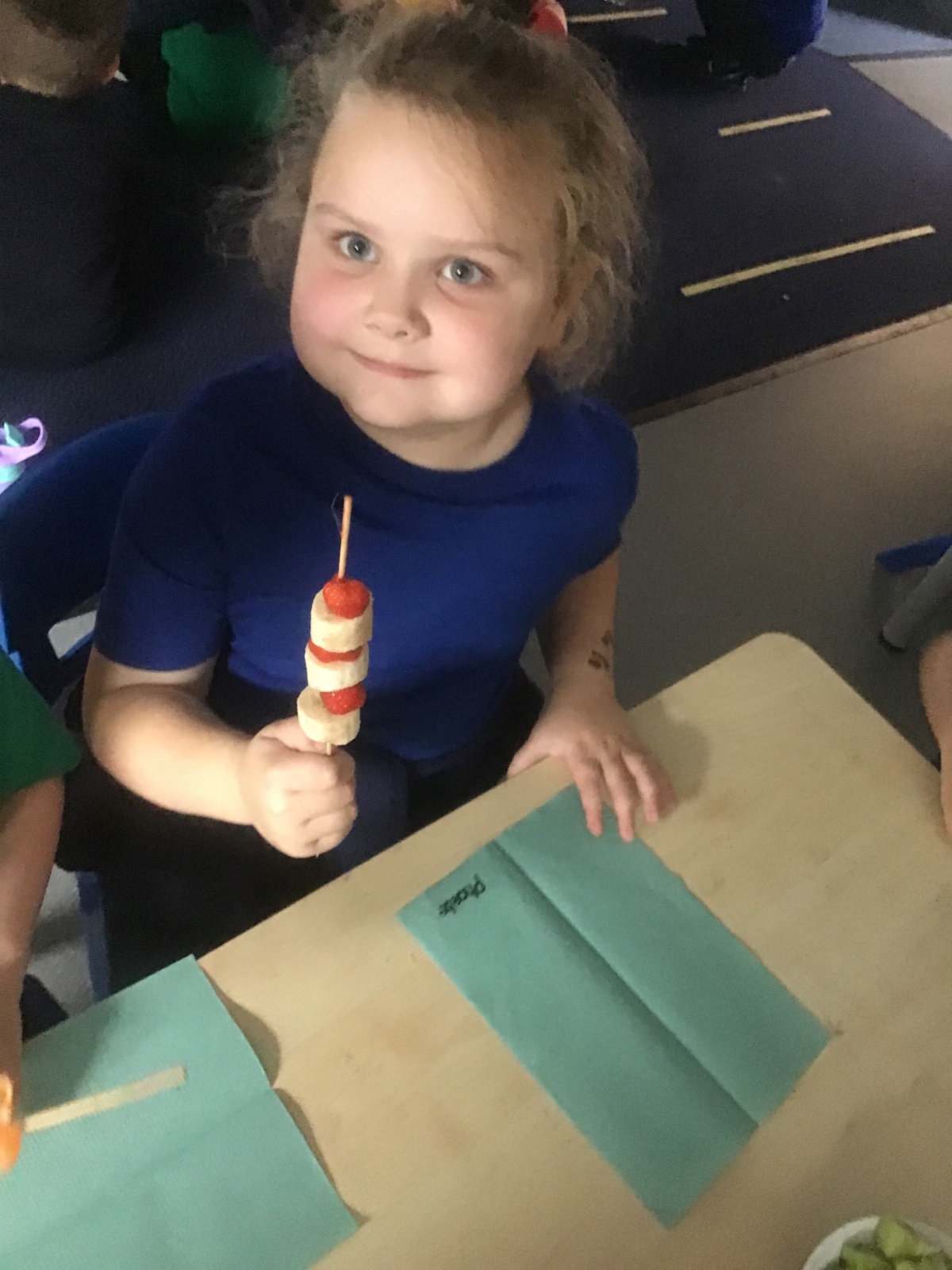As part of our Maths topic on patterns the children enjoyed making fruit kebabs. The children impressed us with our knowledge of AB and ABC patterns and could identify the piece of fruit that they would need to use next on their kebab stick.