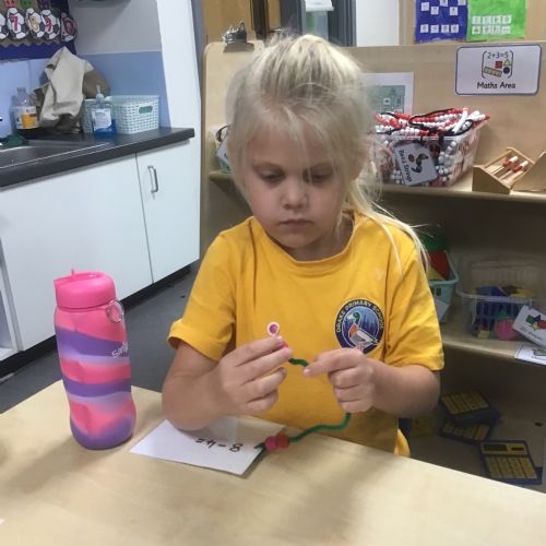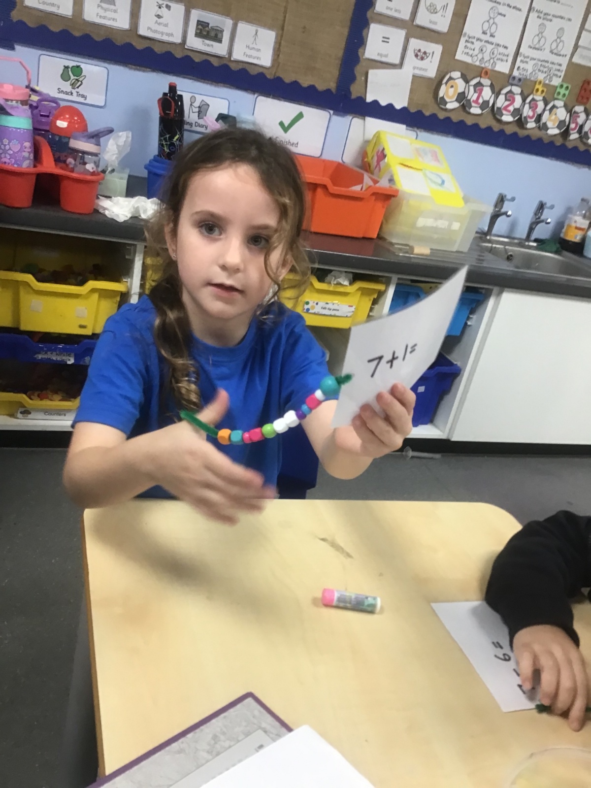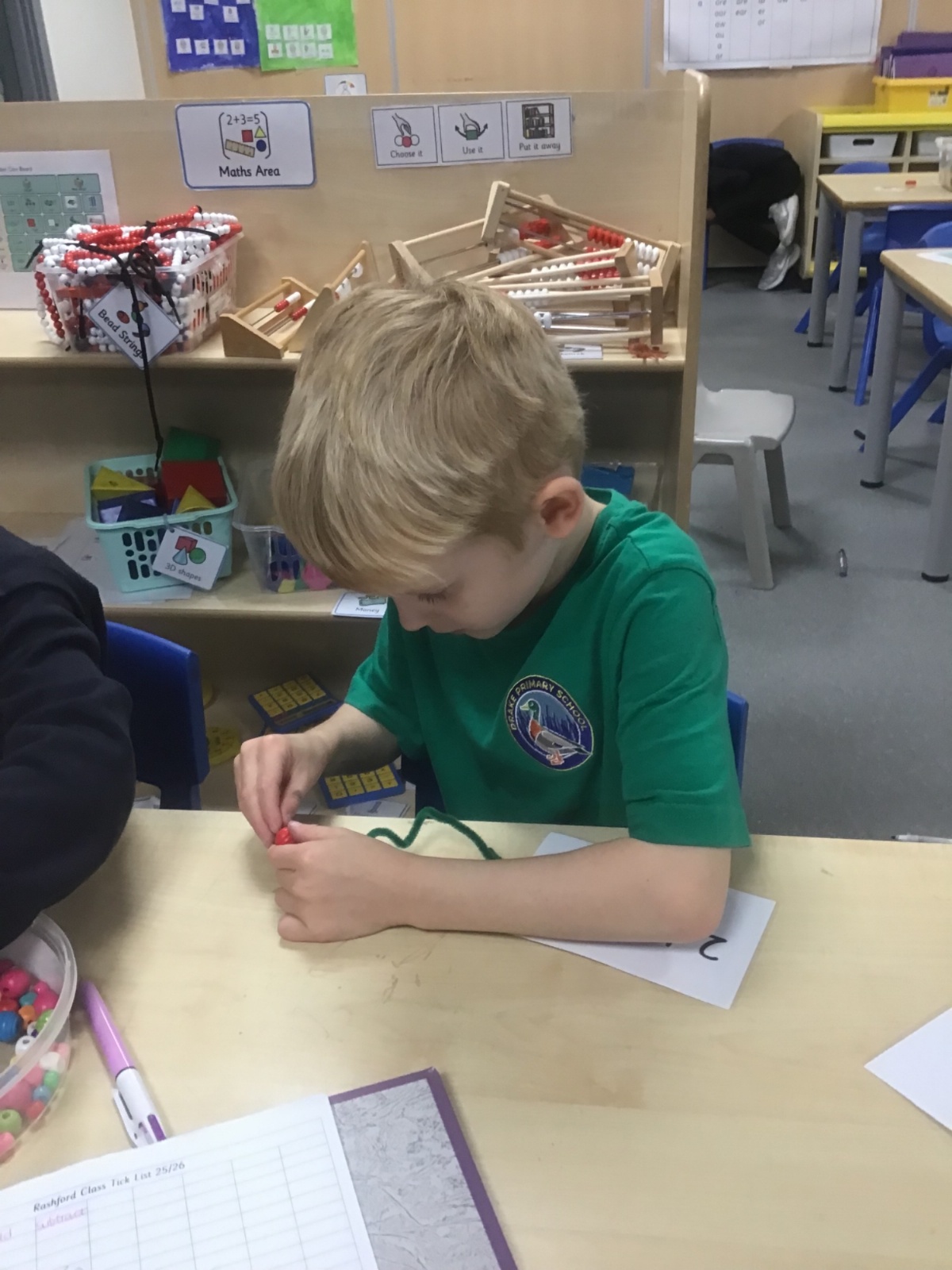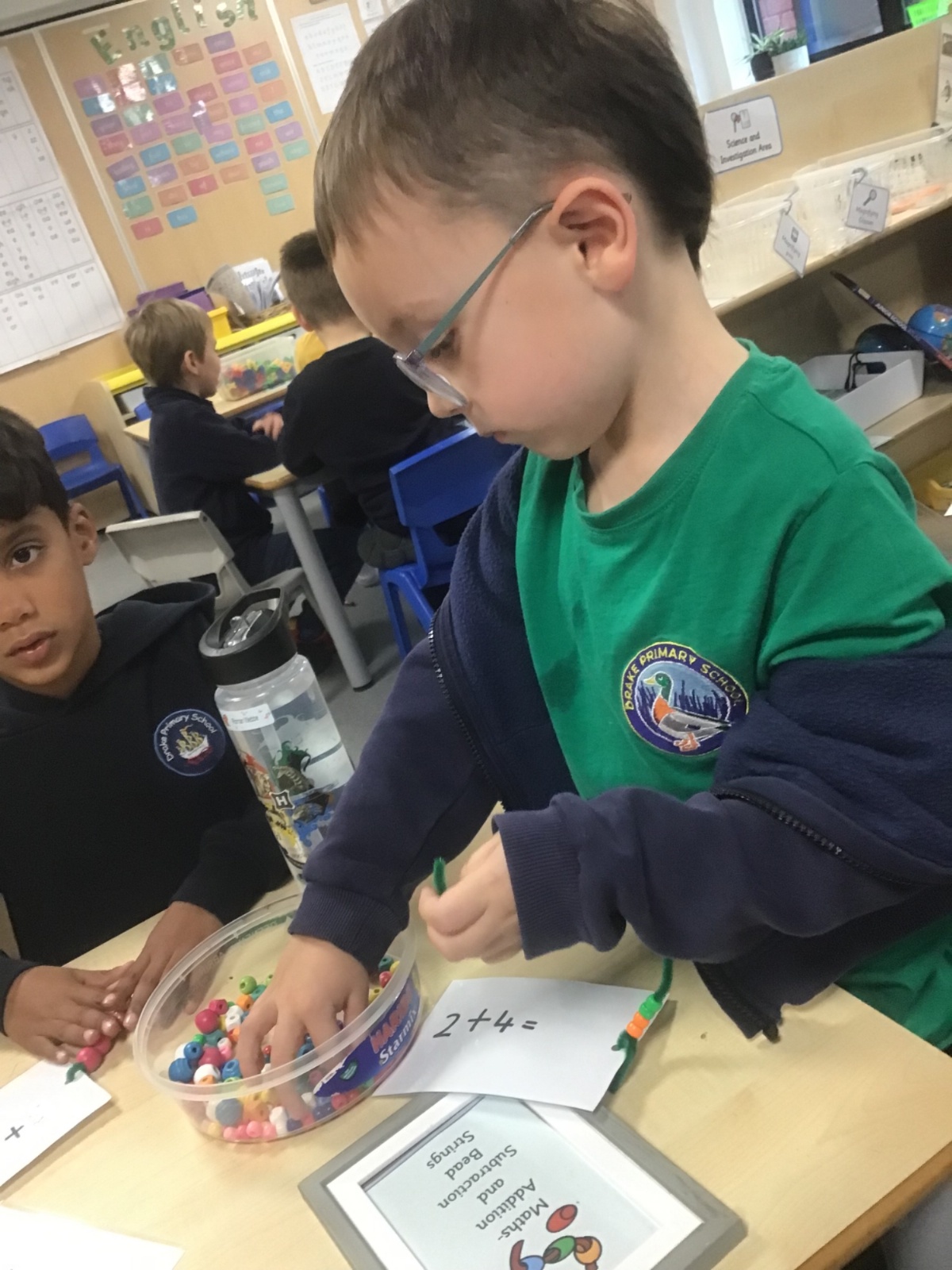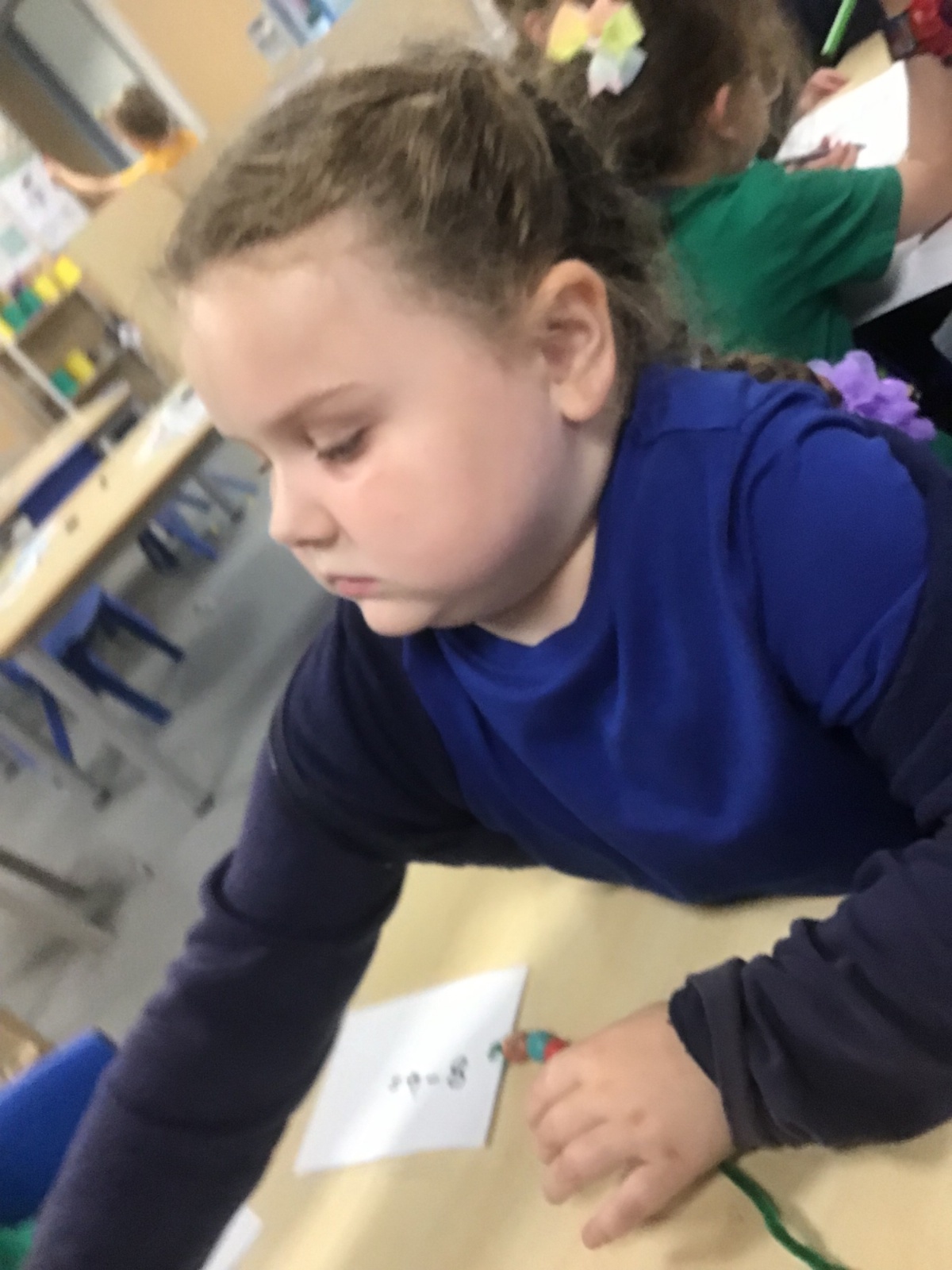 In our Maths, we have been learning about subtraction. The children then enjoyed applying their subtraction skills through making their own bead strings to solve the equations.