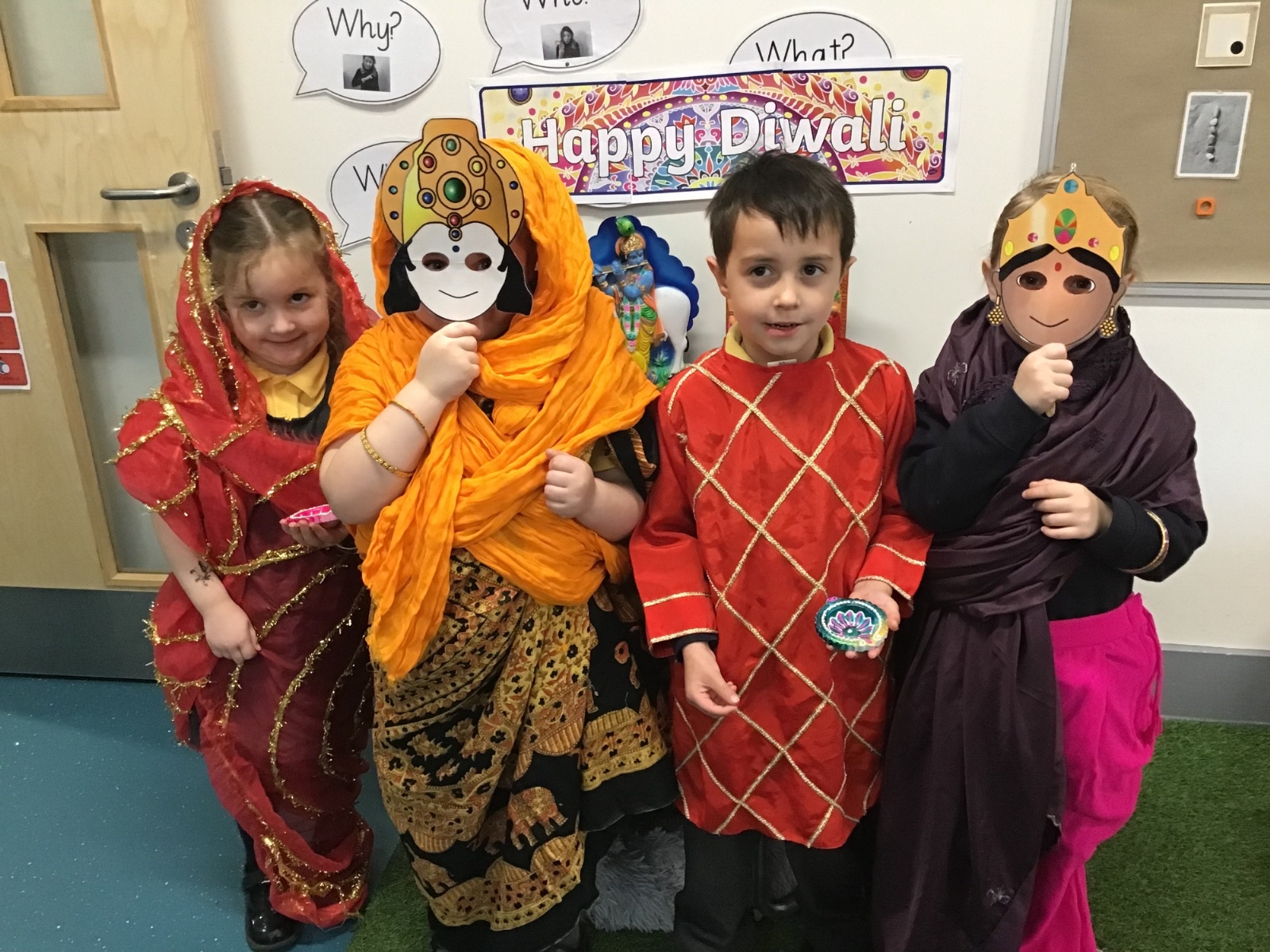 What a bright and busy week we’ve had! We’ve been learning all about Diwali – the Festival of Lights! The children have loved creating colourful rangoli patterns, making their own shiny Diva lamps and lanterns, and exploring the beautiful clothes and sparkly decorations that make Diwali so special. Our classrooms have been full of colour, laughter, and light!