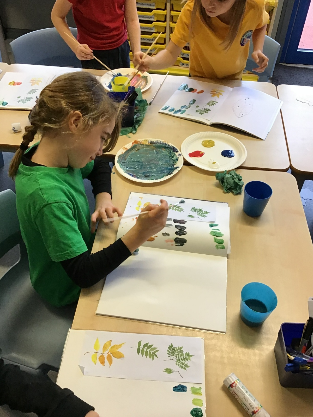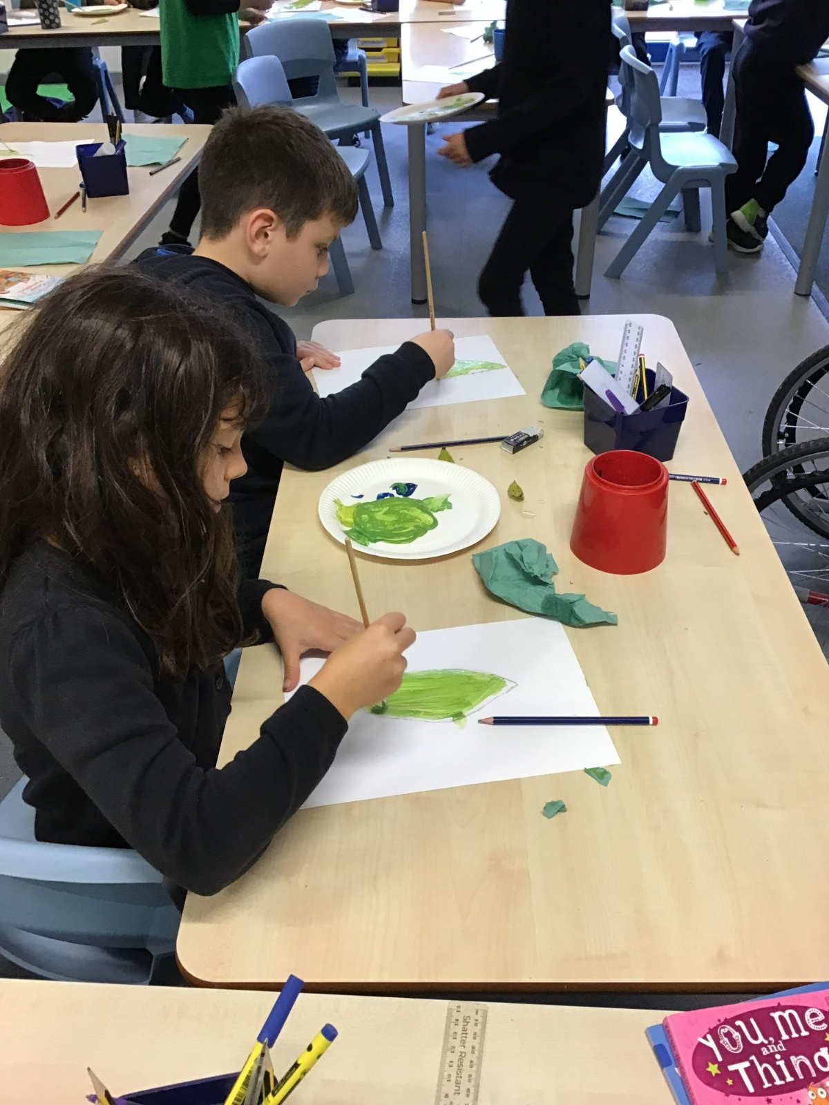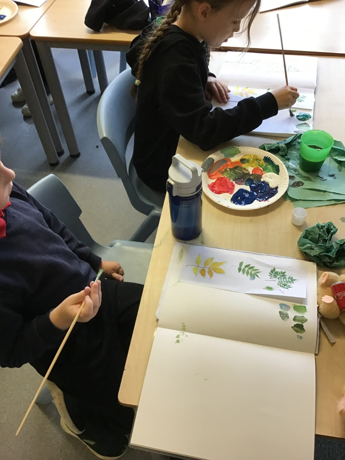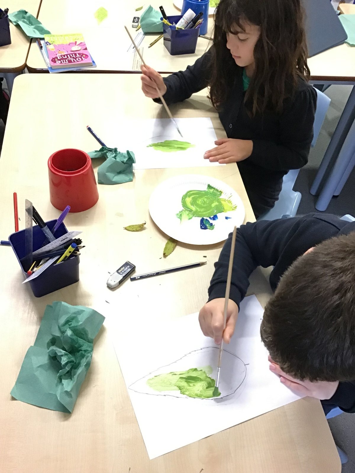 Year 3 have been given an ash tree in Sophia's garden to study over the seasons. We looked carefully at the Autumn ash tree leaf colours- from golden yellows to lime greens and deep browns. Using our observations, we created our colour palettes and painted our own ash tree leaf.