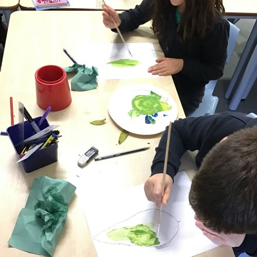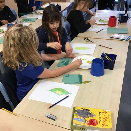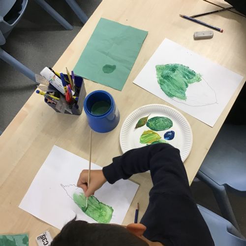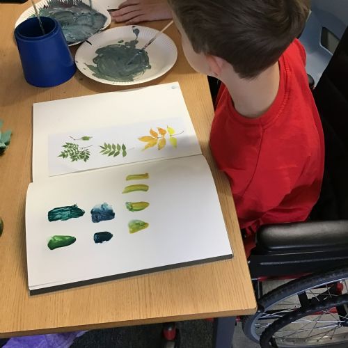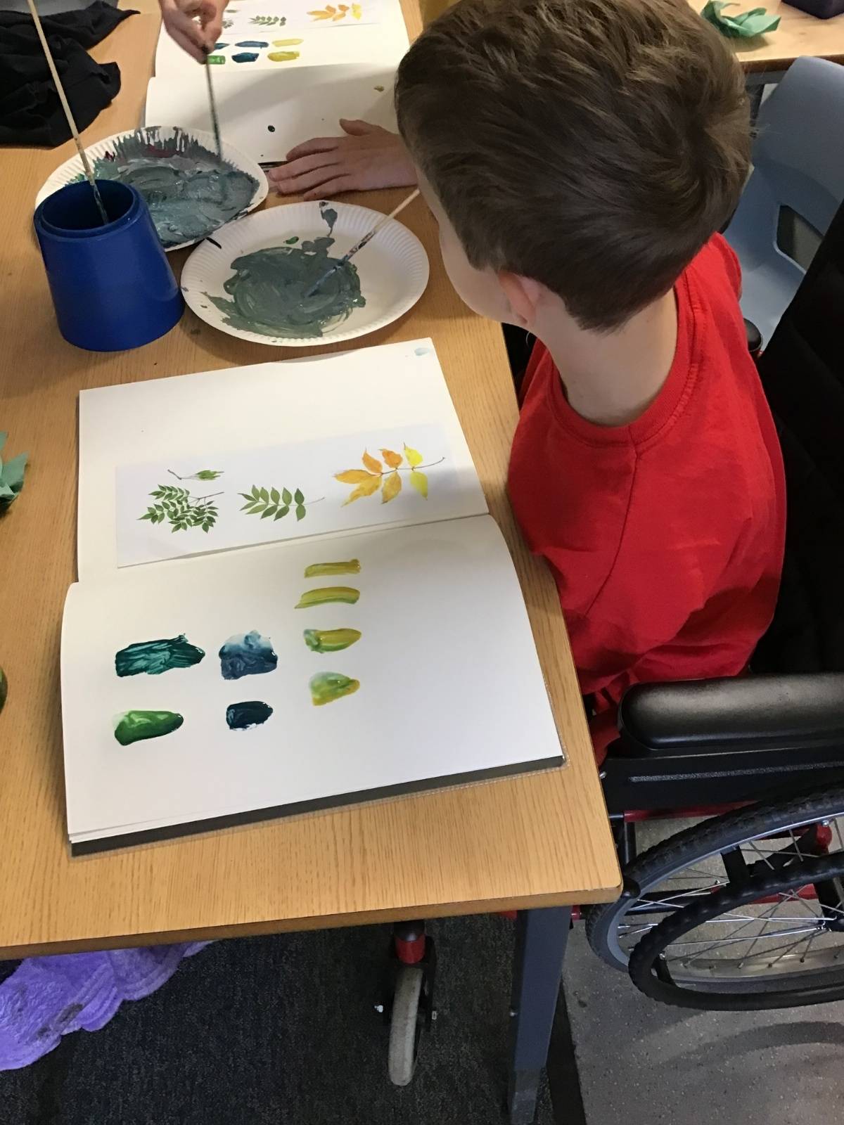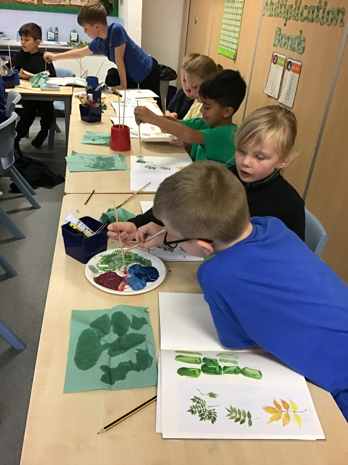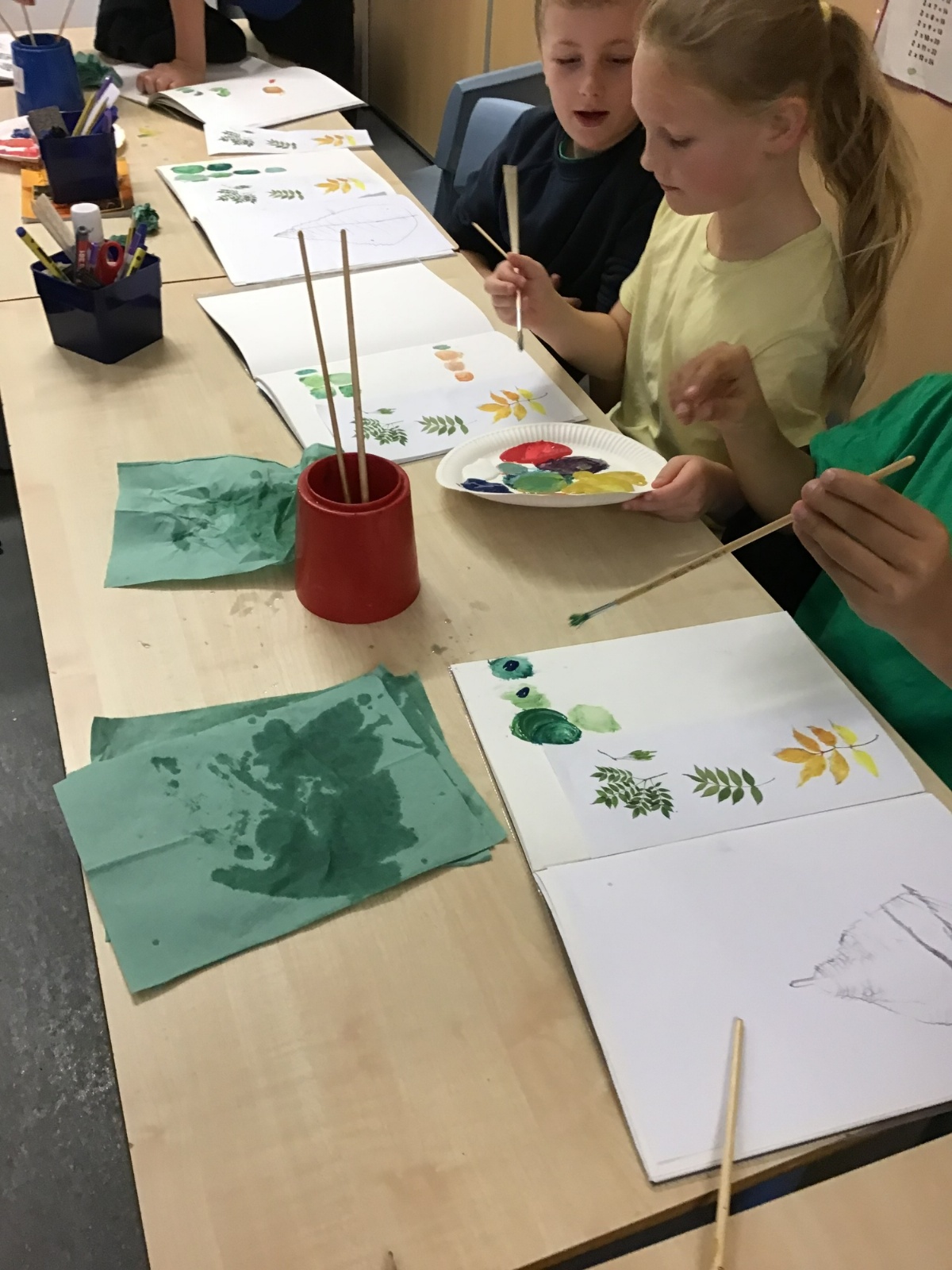 Year 3 have been given an ash tree in Sophia's garden to study over the seasons. We looked carefully at the Autumn ash tree leaf colours- from golden yellows to lime greens and deep browns. Using our observations, we created our colour palettes and painted our own ash tree leaf.