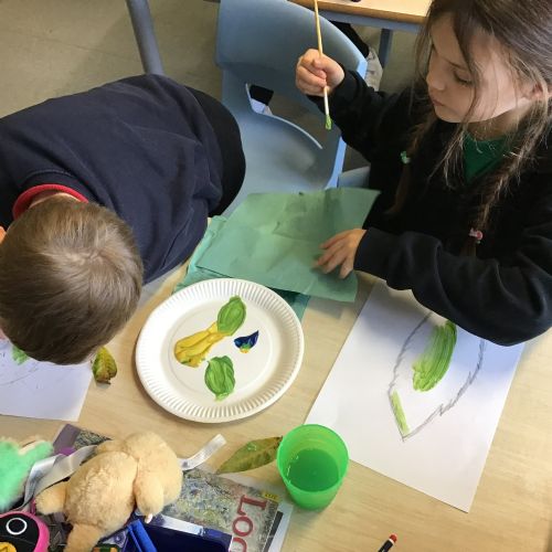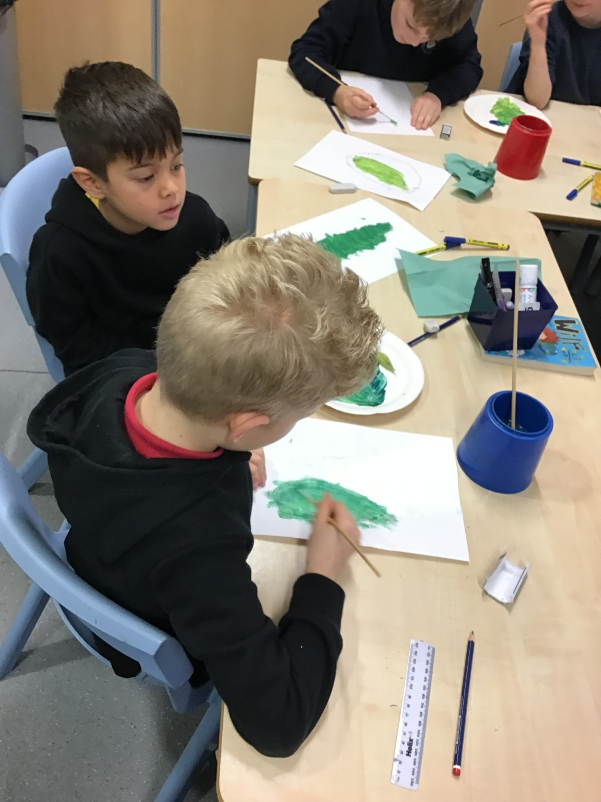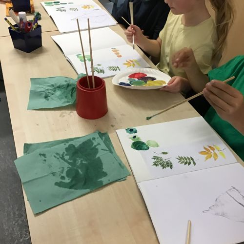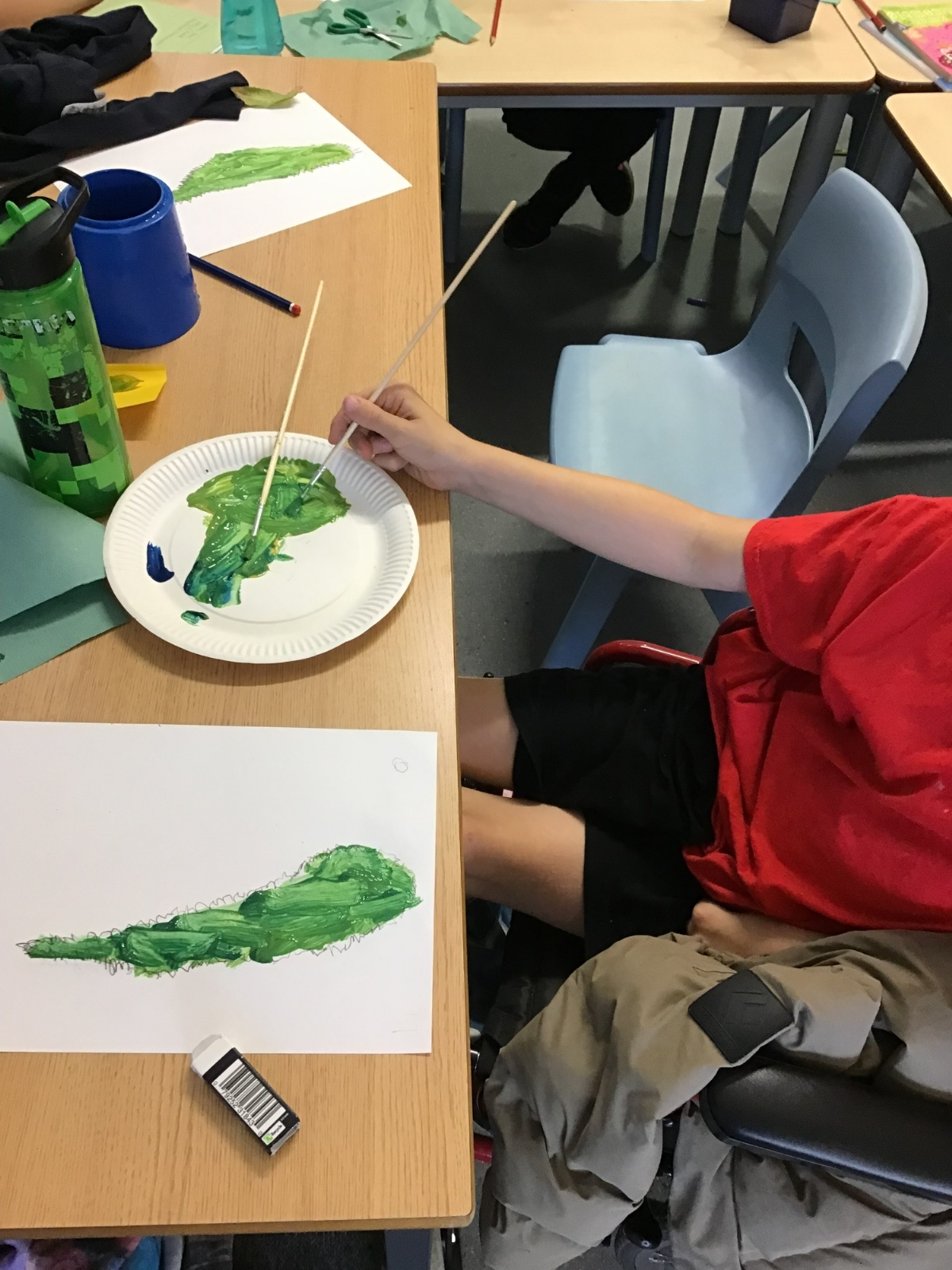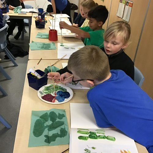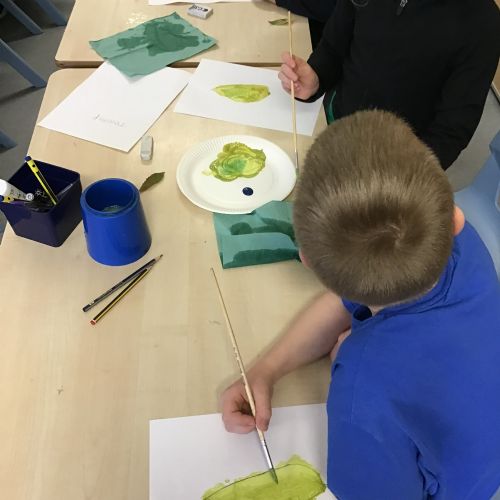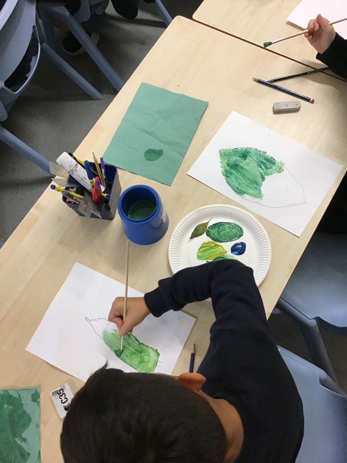 Year 3 have been given an ash tree in Sophia's garden to study over the seasons. We looked carefully at the Autumn ash tree leaf colours- from golden yellows to lime greens and deep browns. Using our observations, we created our colour palettes and painted our own ash tree leaf.