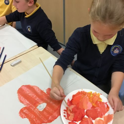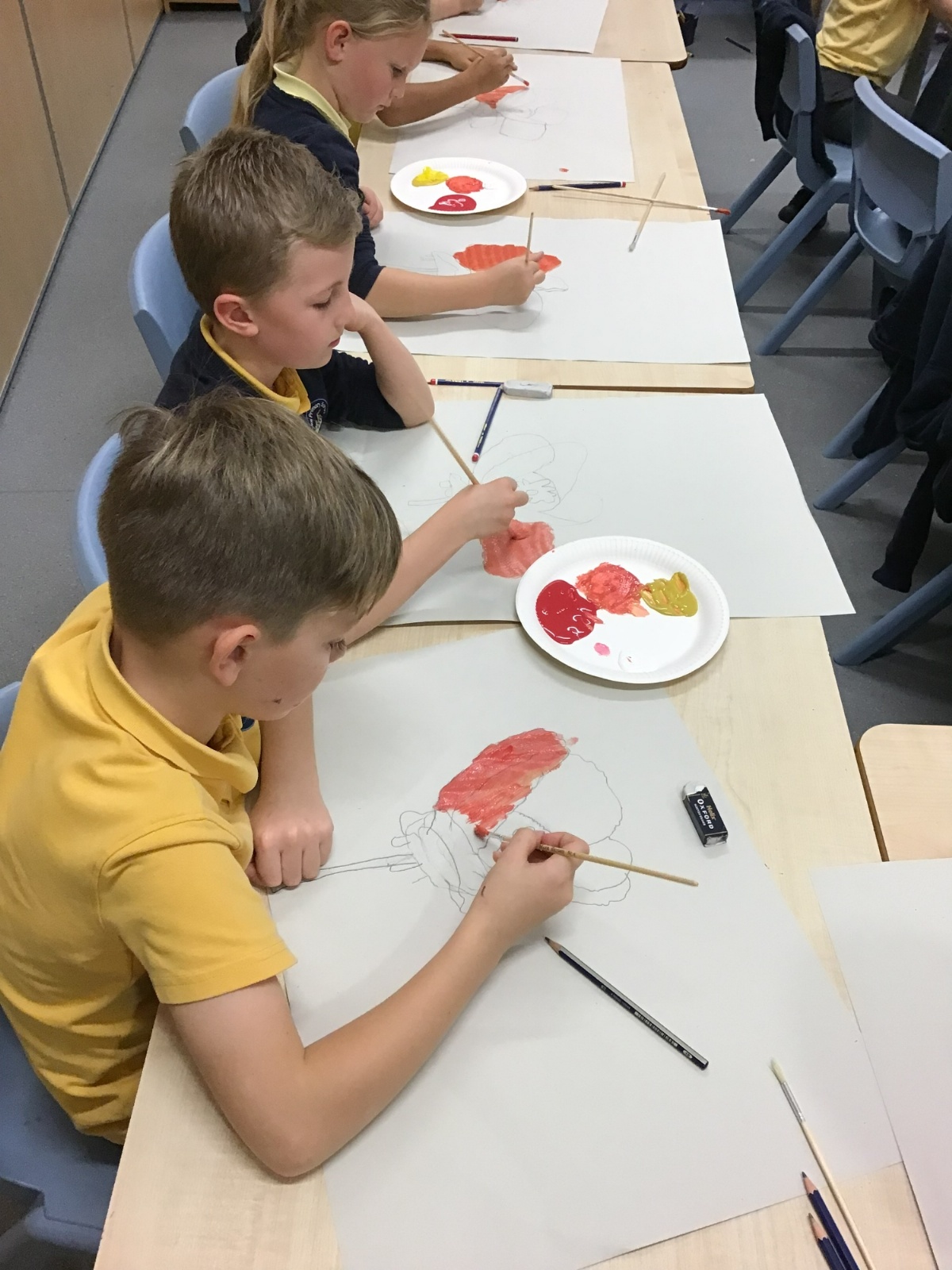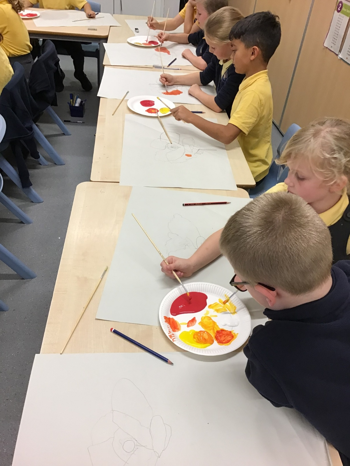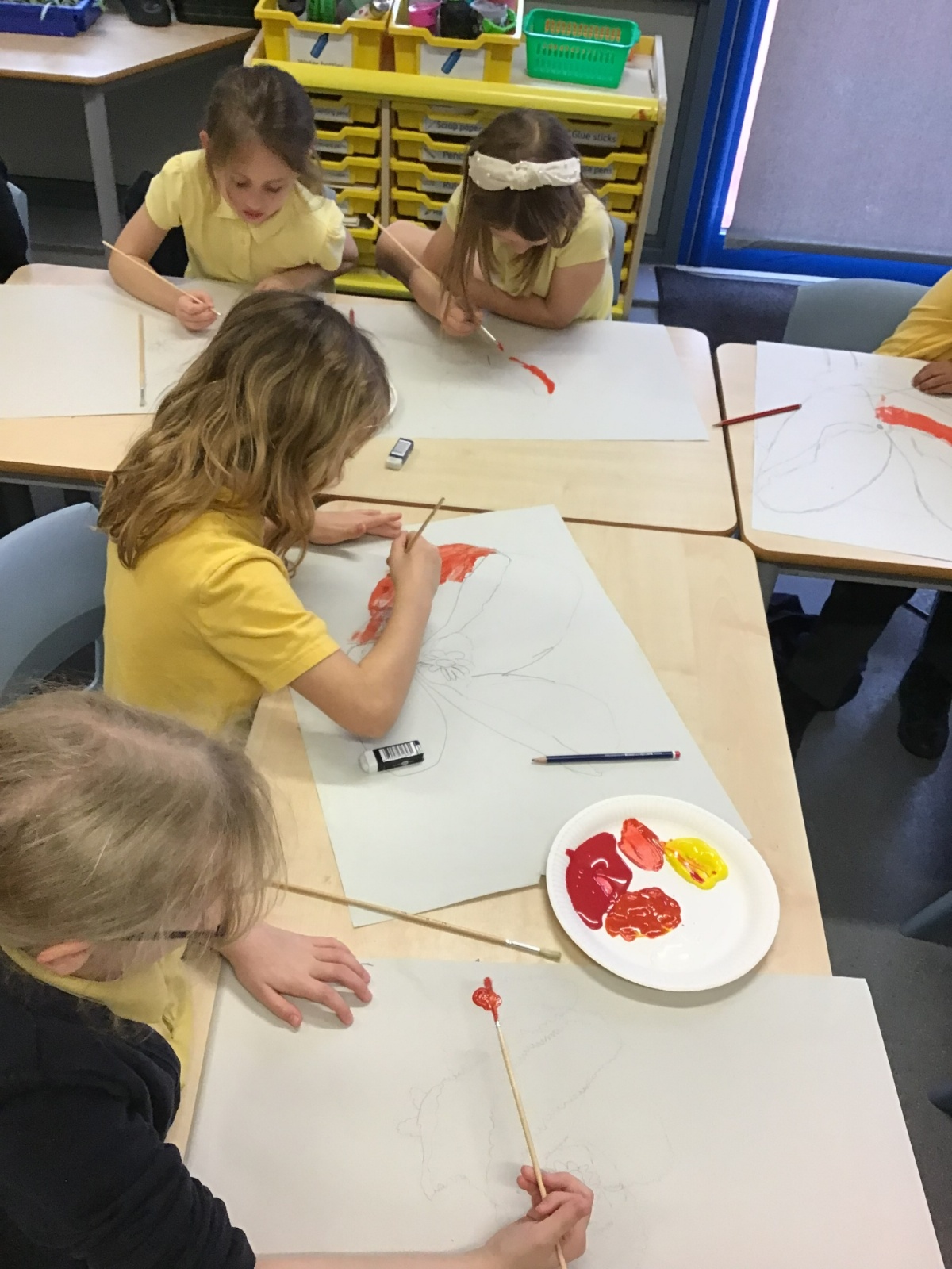 As part of our Remembrance work, we have been creating beautiful poppy paintings inspired by the artist Georgia O’Keeffe. We began by carefully sketching the outline of a poppy and then explored how to mix different tints and shades, before painting our poppies. Each of us will dedicate our poppy to a soldier from Thetford who has died in a war.