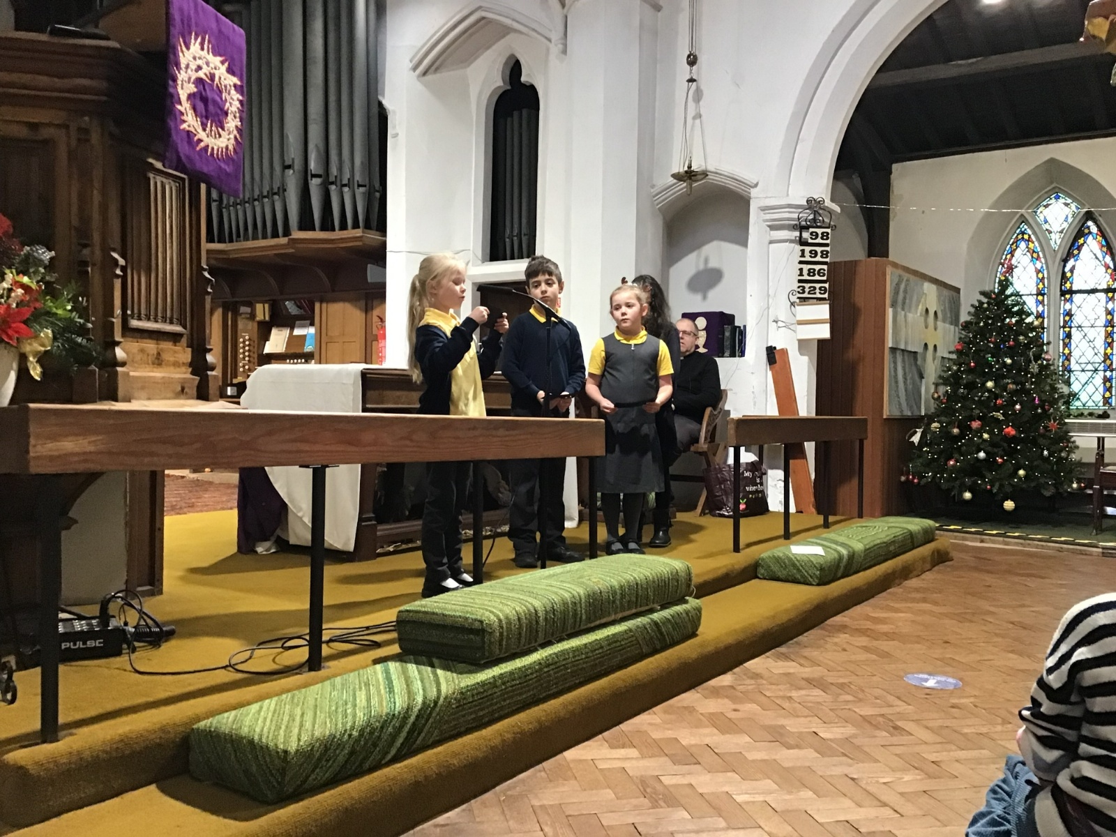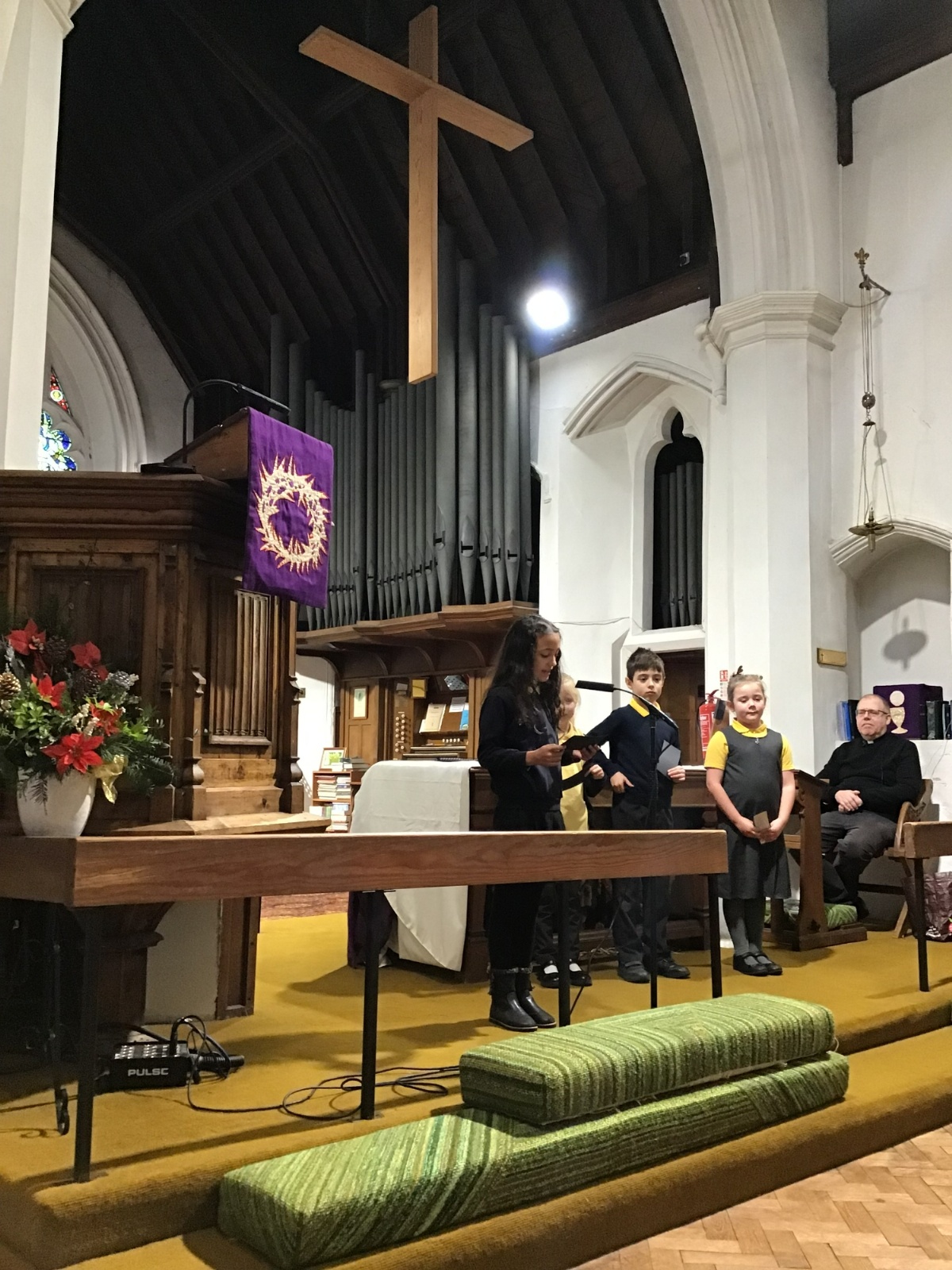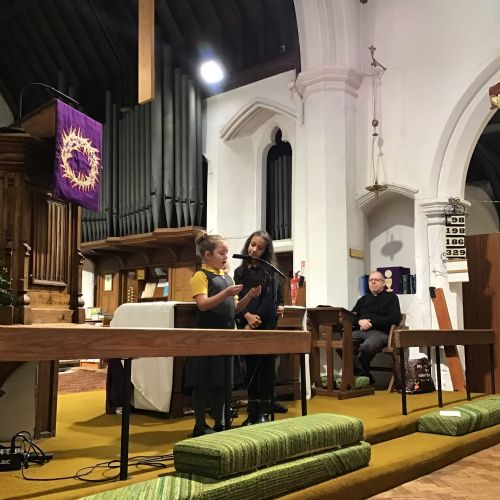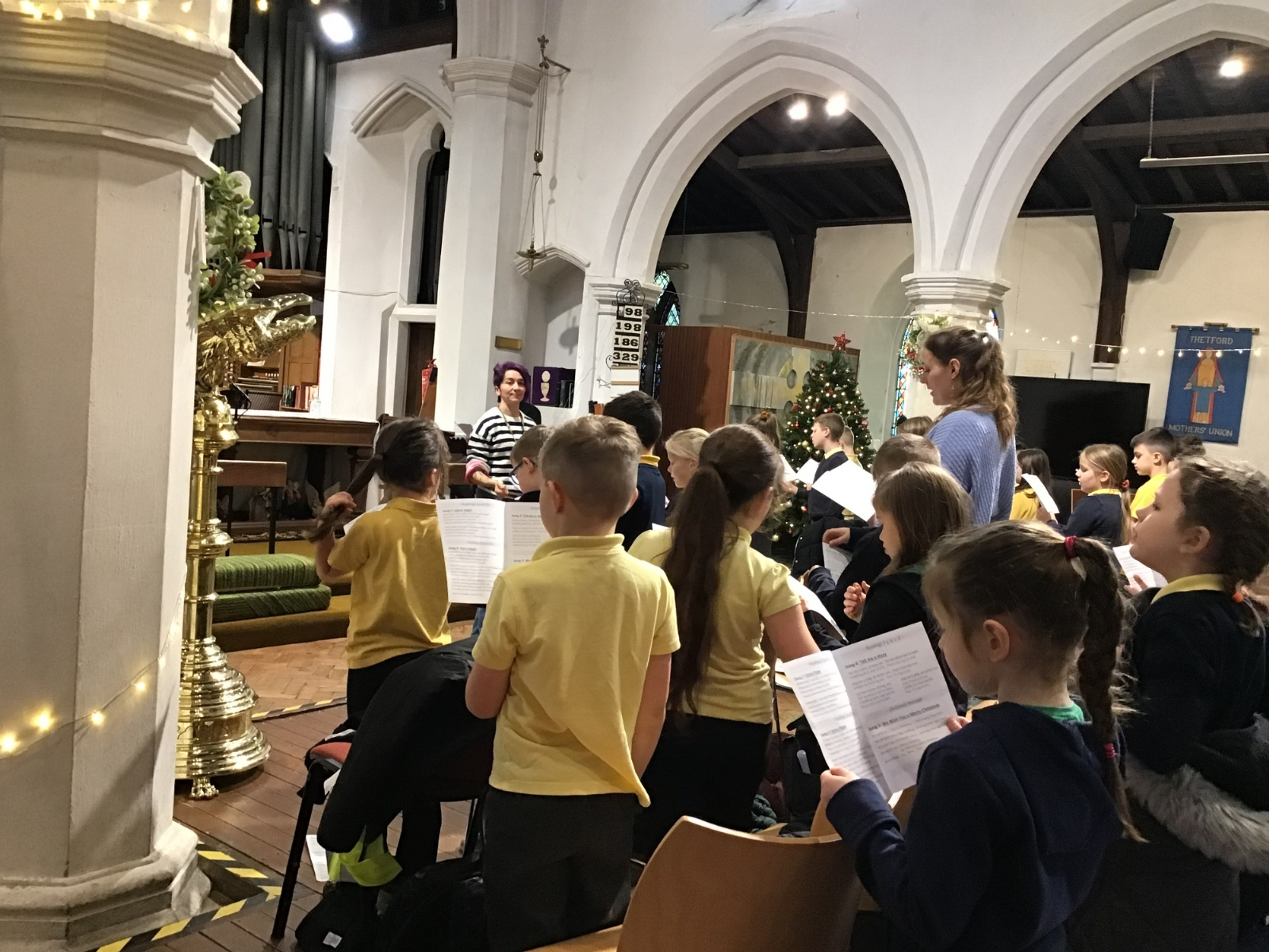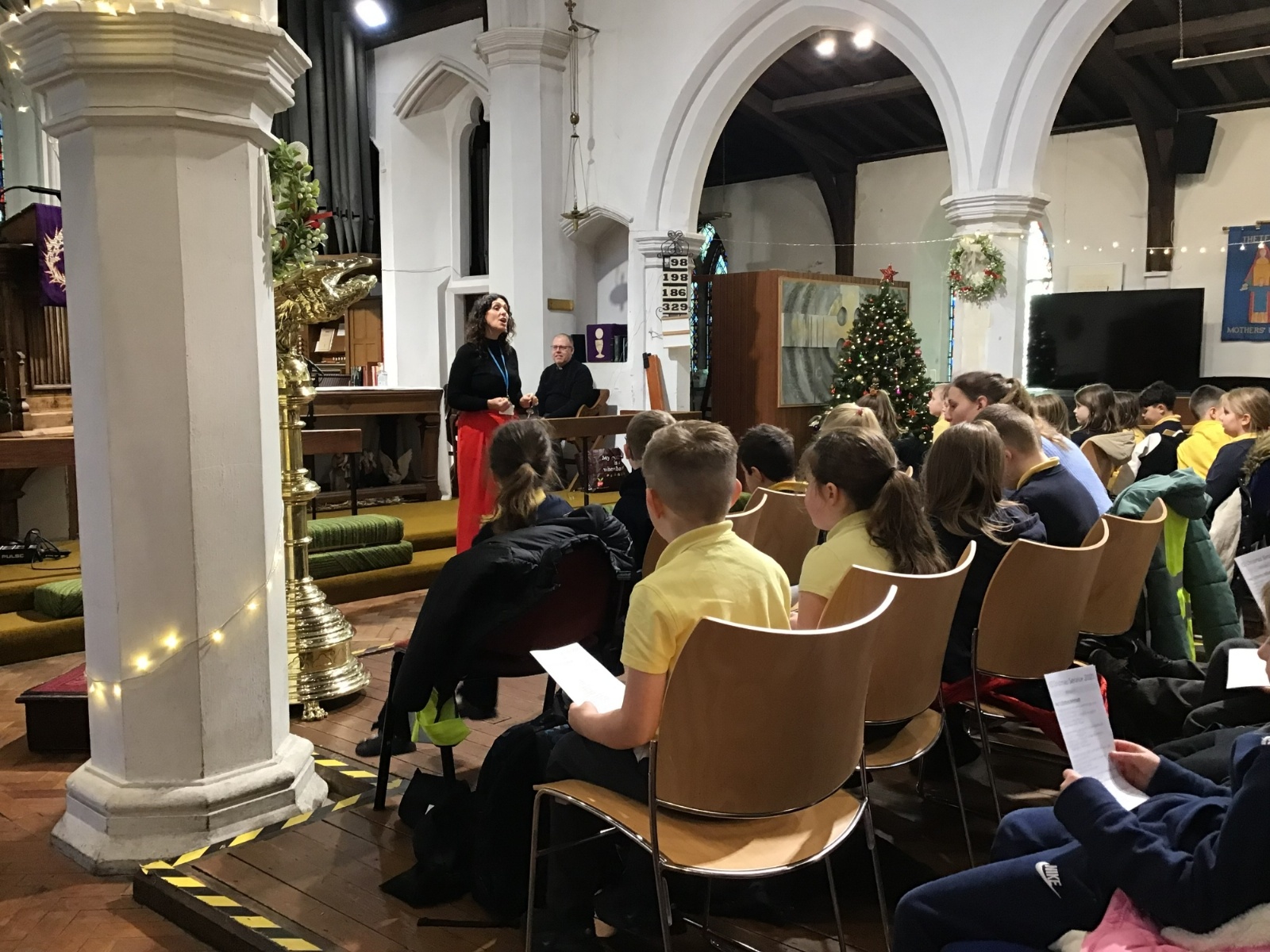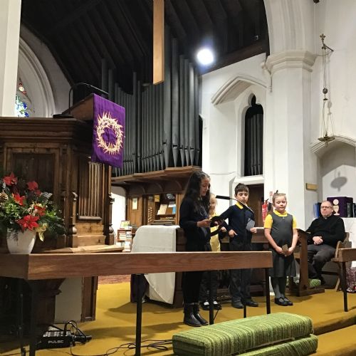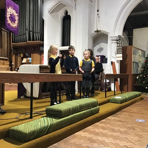 We visited St Cuthbert's church for a carol service. We enjoyed seeing the church decorated for Christmas and singing some carols.
