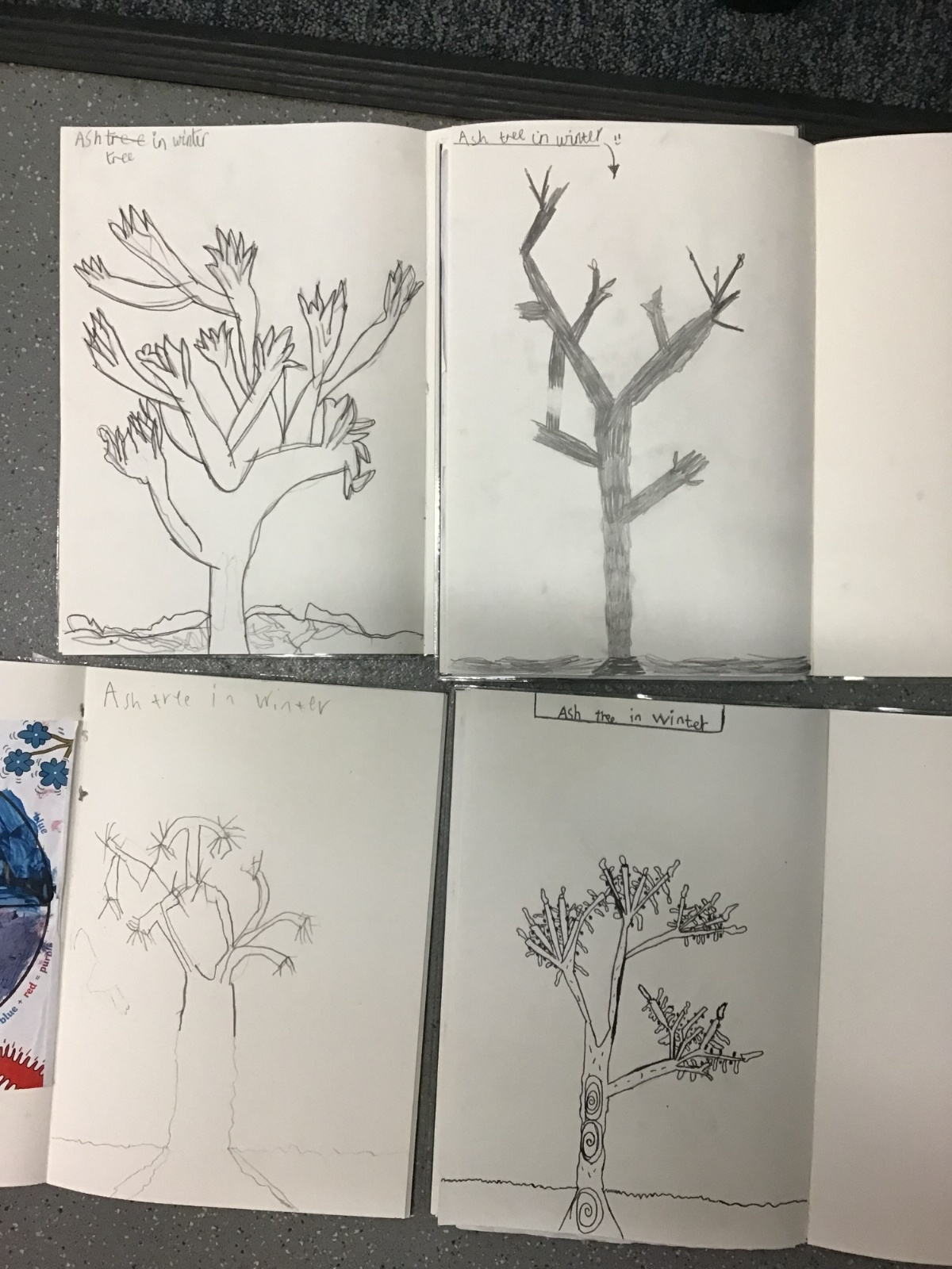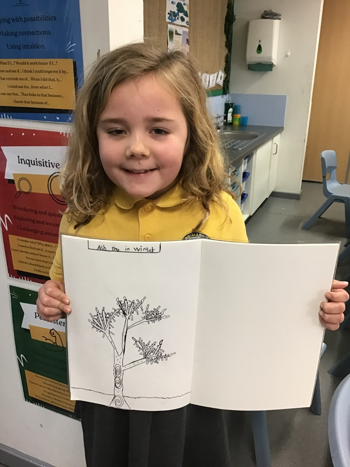 We visited Ashley the ash tree in Sophia’s garden and observed the changes from autumn to winter. The children sketched the tree and noticed the lack of leaves, as it is saving energy during the winter months.