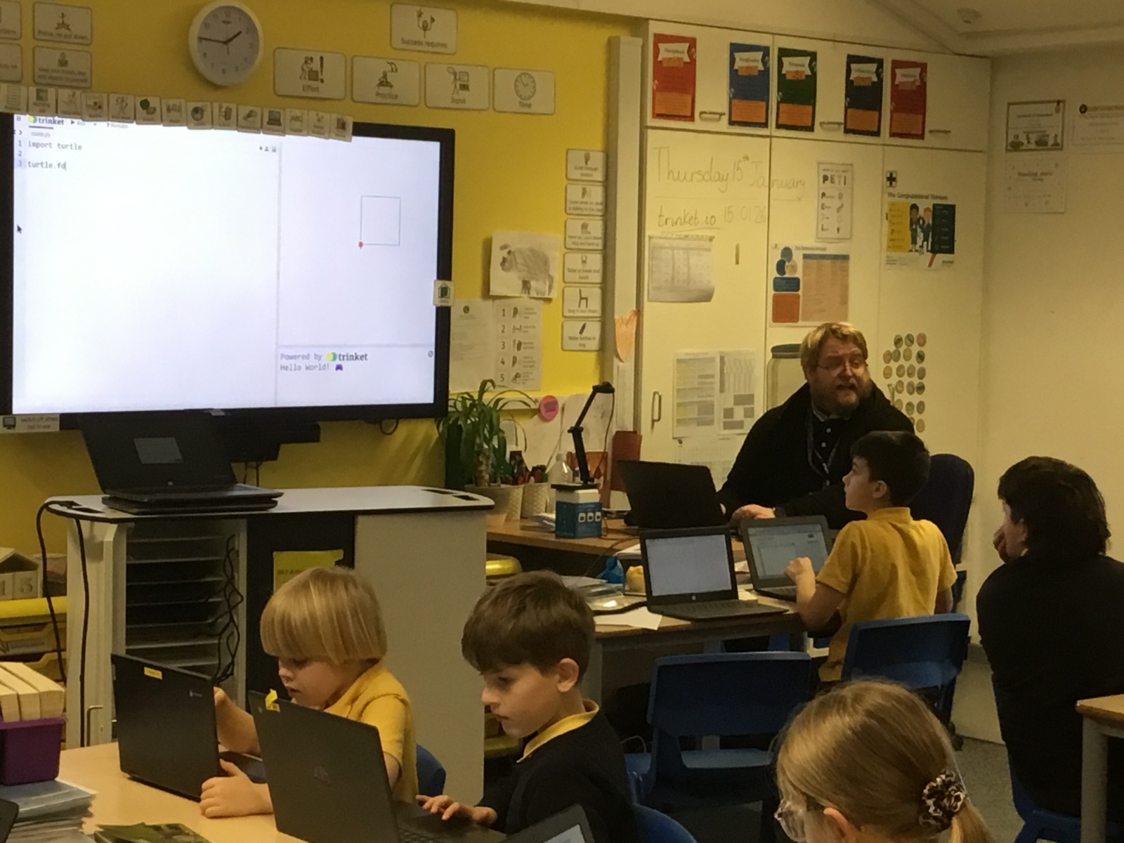 In a computing lesson this week, Year 4 pupils began learning about programming using Logo. Logo is a text-based programming language where pupils type commands and see their instructions drawn on the screen. The children learnt basic Logo commands and used them to read and write simple code, developing their problem-solving skills and understanding of how programs work.