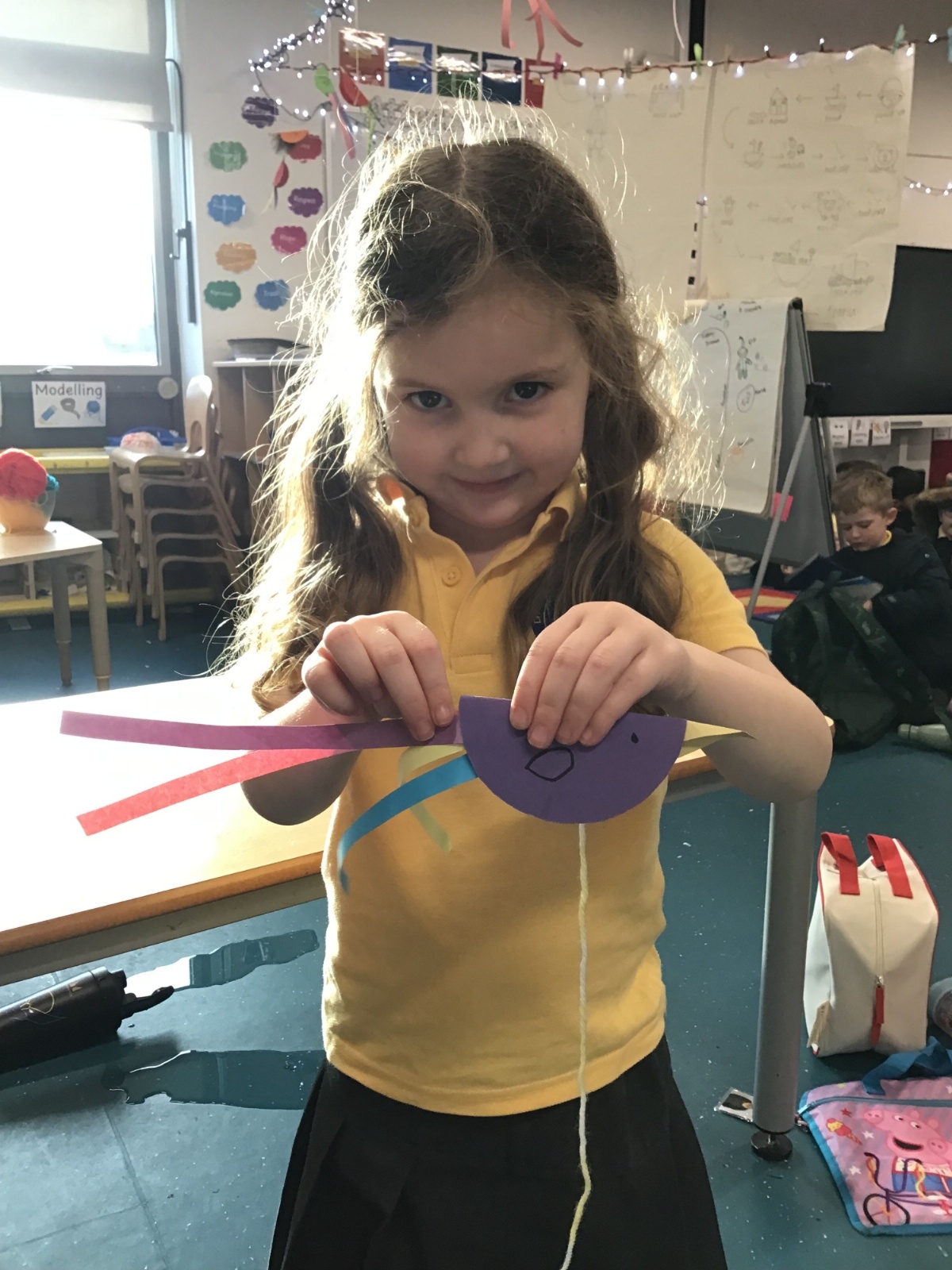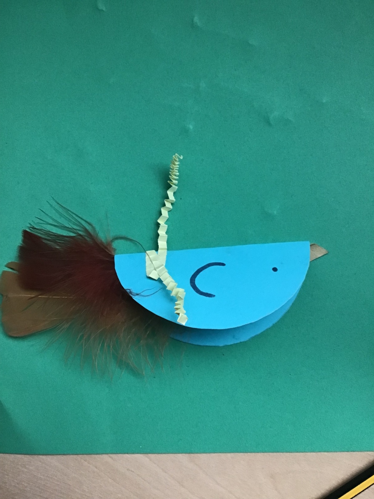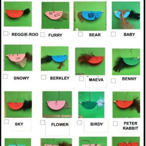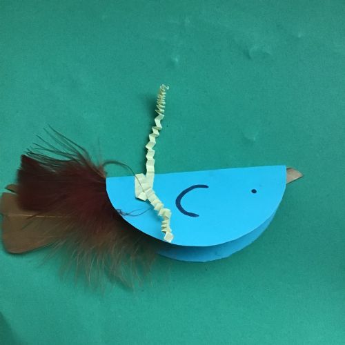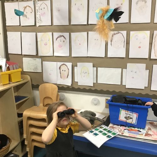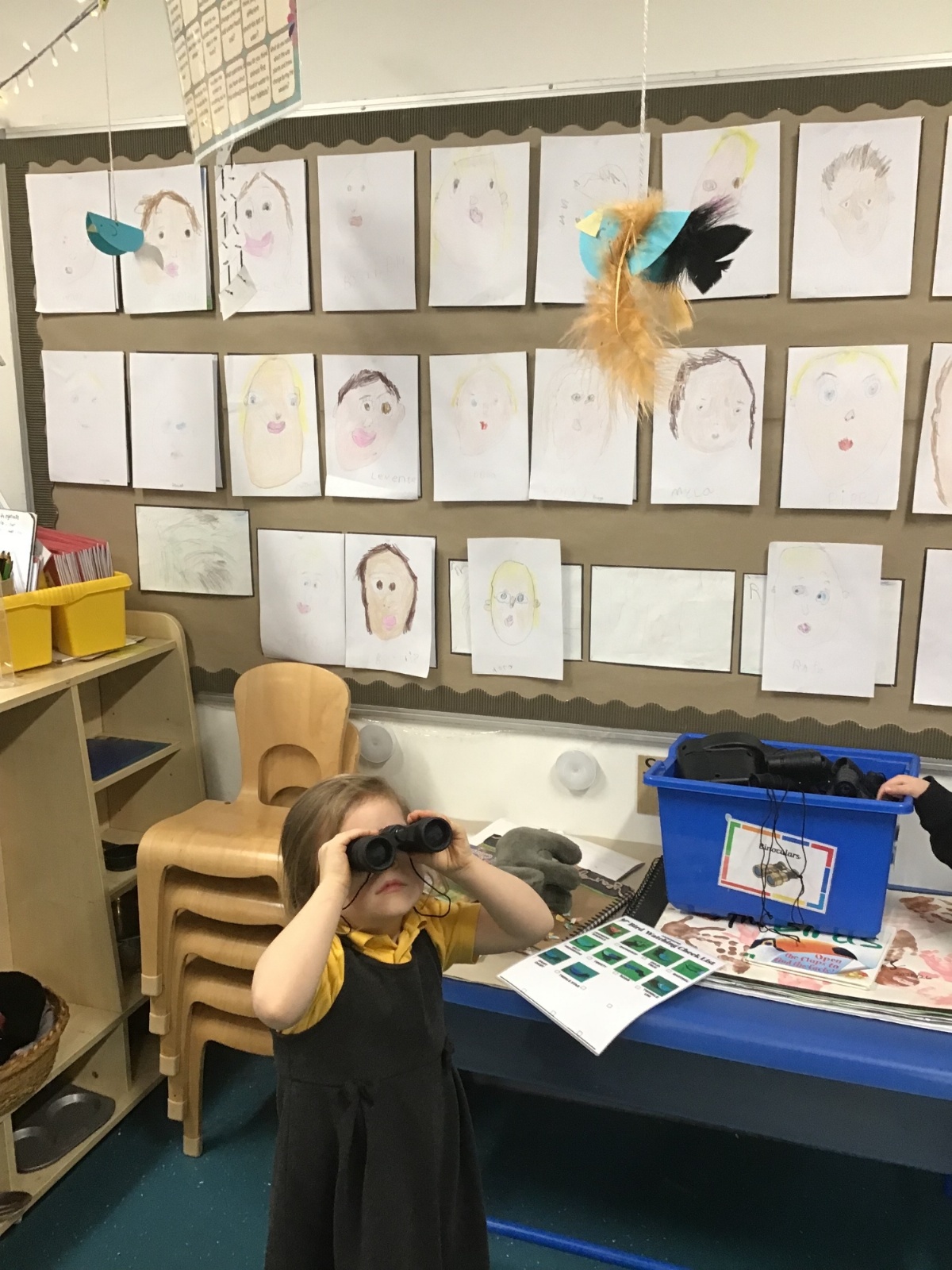 Each child made their own bird and was given a pair of binoculars, along with a photo checklist showing different birds and their names. This allowed the children to go on their own bird hunts, searching for their creations and their friends’ birds and ticking them off as they found them.