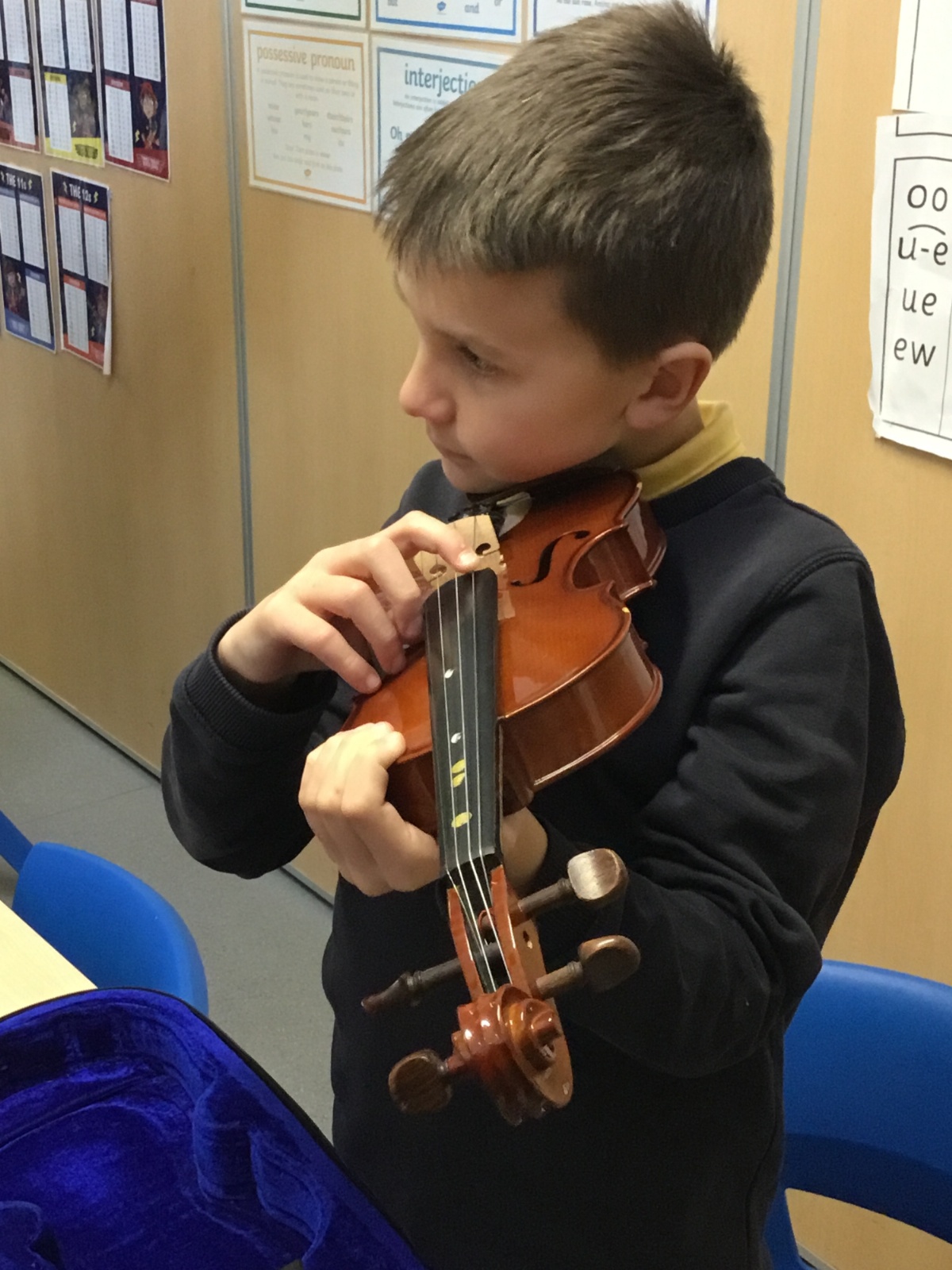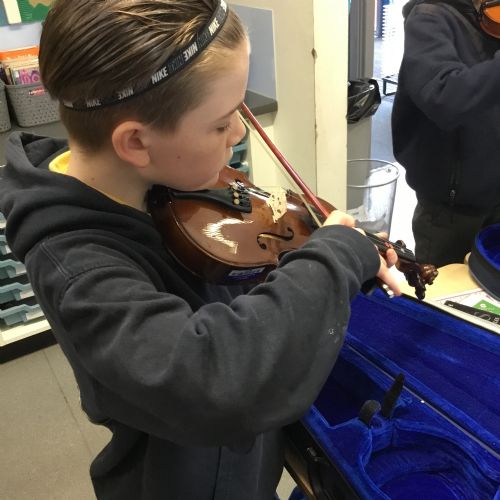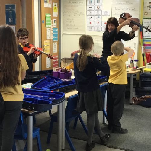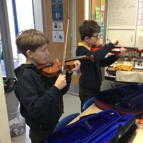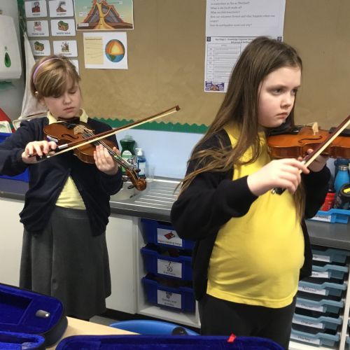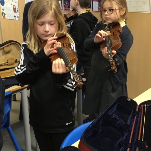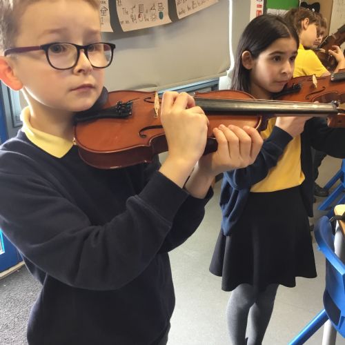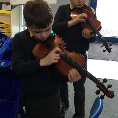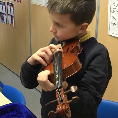 Year 4 have been enjoying learning to play the violin as part of their music lessons. The children have started to explore how the instrument works and have been learning about the different parts of the violin, including the strings, bow, and body. They have practised holding the violin and bow correctly while beginning to create their first sounds. It has been wonderful to see their enthusiasm as they develop new musical skills.