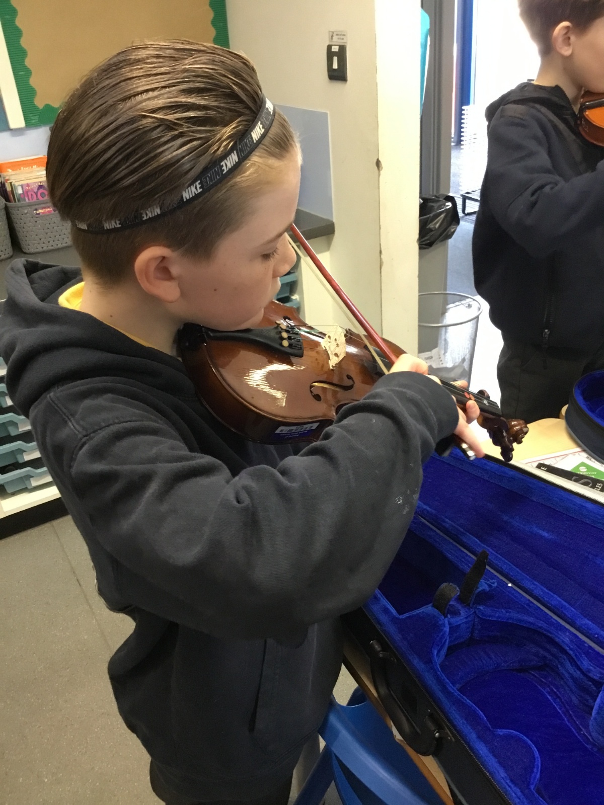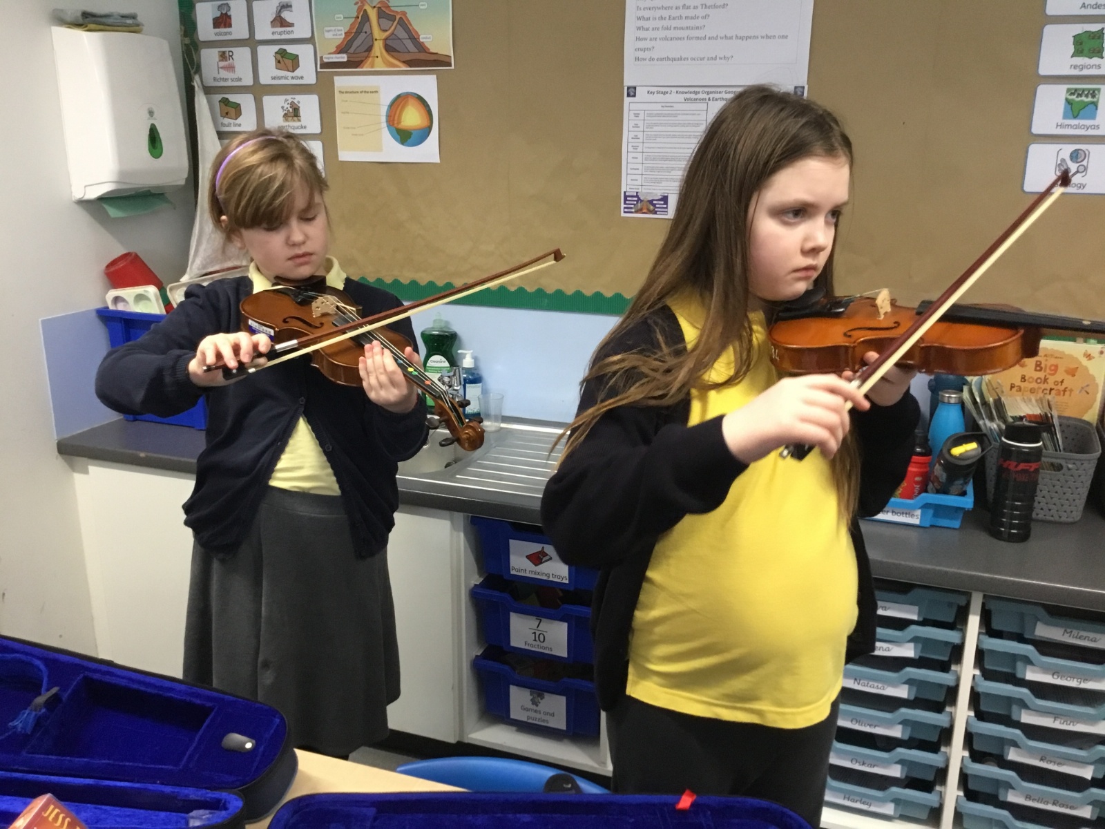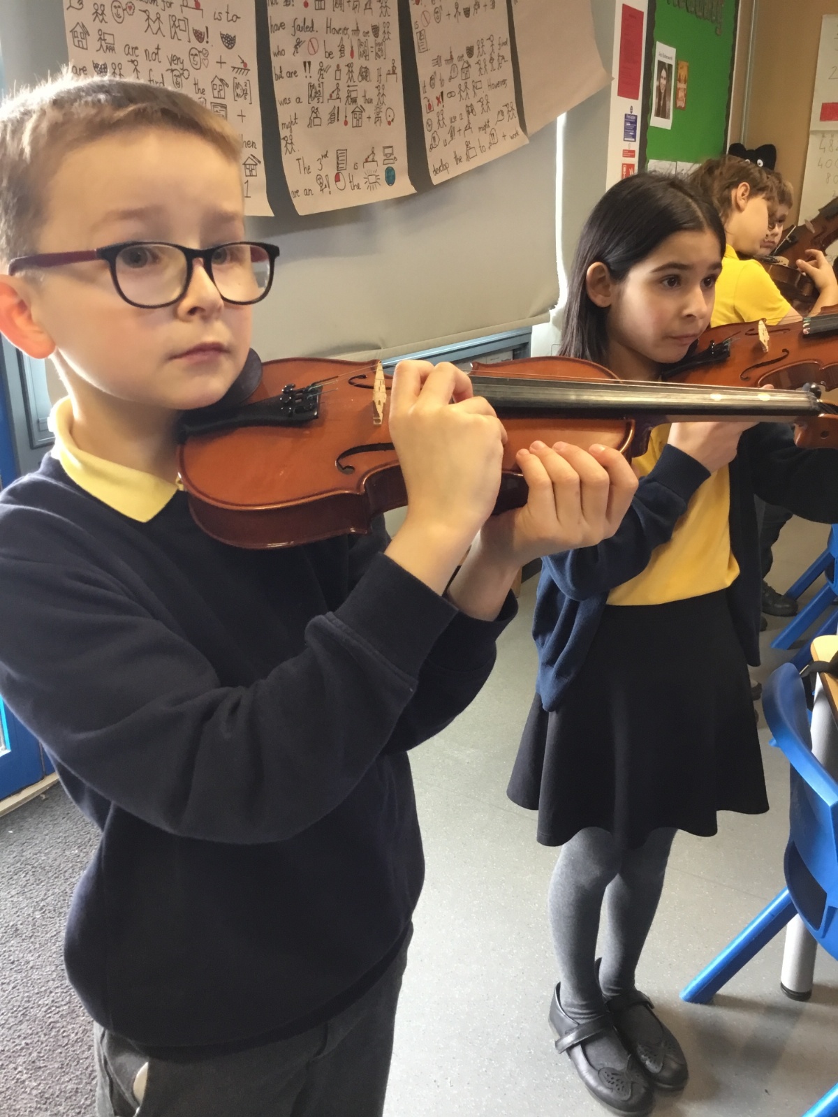 Year 4 have been enjoying learning to play the violin as part of their music lessons. The children have started to explore how the instrument works and have been learning about the different parts of the violin, including the strings, bow, and body. They have practised holding the violin and bow correctly while beginning to create their first sounds. It has been wonderful to see their enthusiasm as they develop new musical skills.