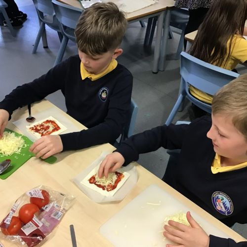 Following our learning about eating seasonally, all the Year 3 children really enjoyed making a sweet or savoury puff pastry tart, using seasonal fruits and vegetables. Children practised their cutting skills as well as spreading, sprinkling and grating! They demonstrated care and perseverance when using the knives. A big well done to all of Year 3 -  we hope you enjoyed eating your tarts at home!