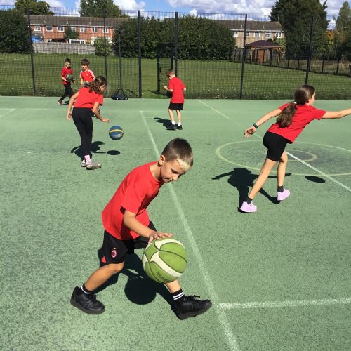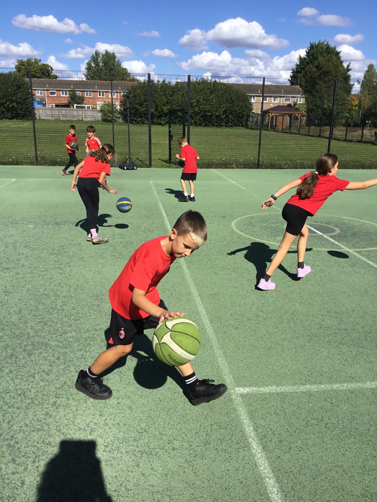 This term in PE we are learning basketball skills. We are developing attacking skills to move towards the goal. We are imbedding our dribbling skills. Developing passing and moving and playing with the rules of the game.