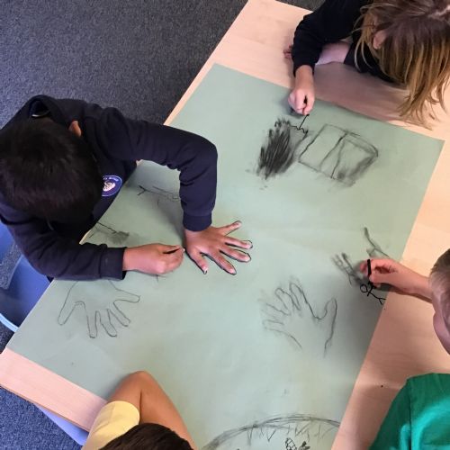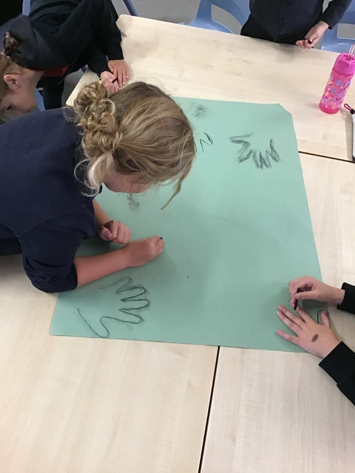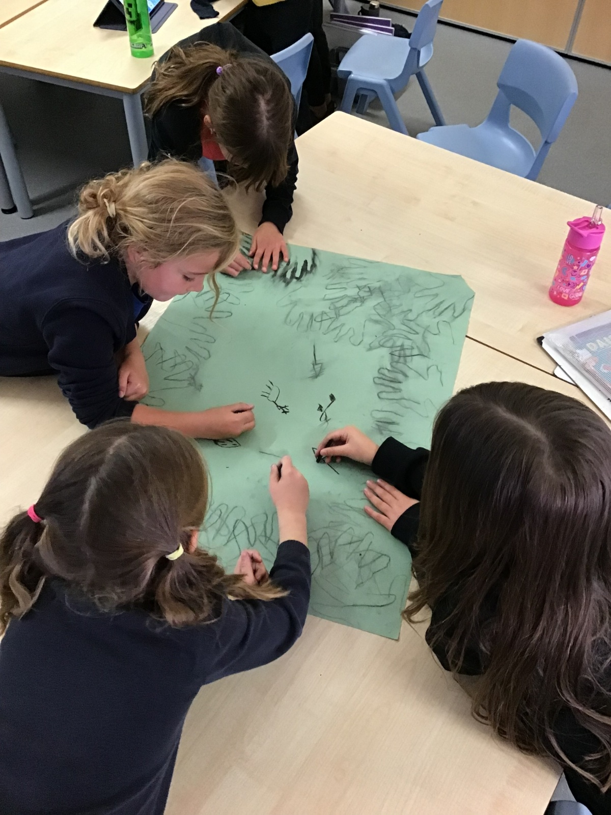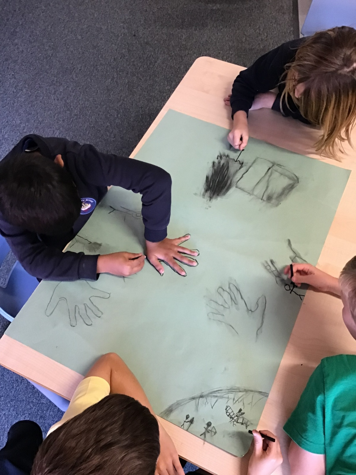 Using charcoal, we explored how to draw handprints, wild animals, and ancient settlements. We had lots of fun experimenting with charcoal as a drawing material and learning how it can be used to create bold, expressive artwork—just like the early humans did thousands of years ago!