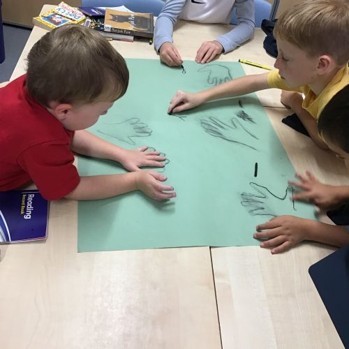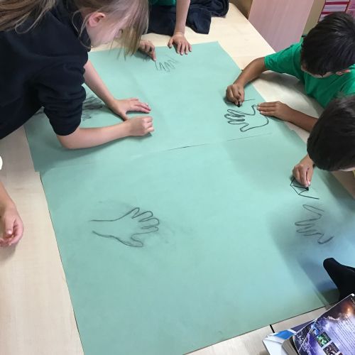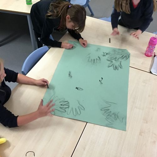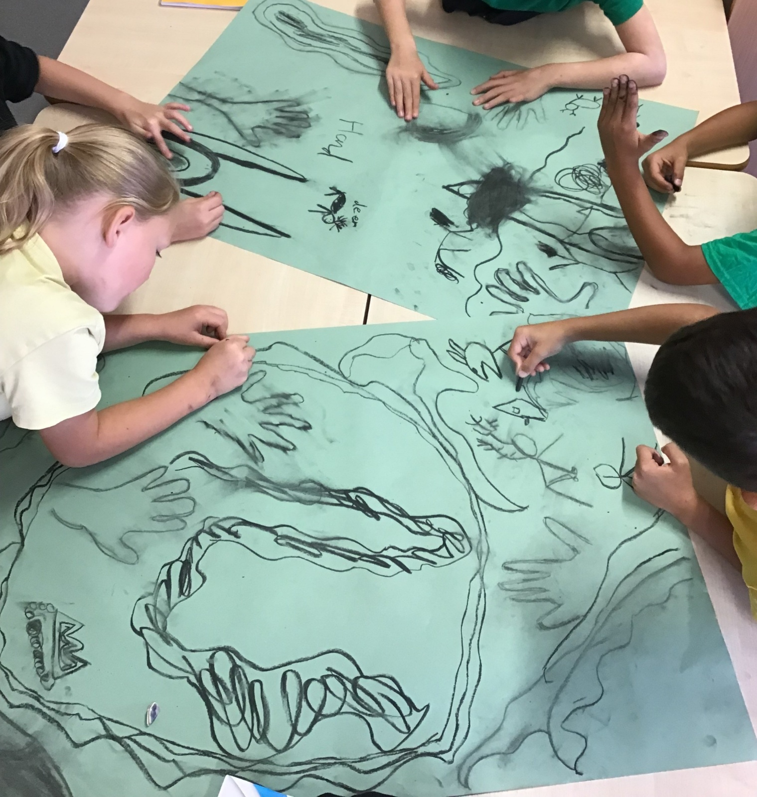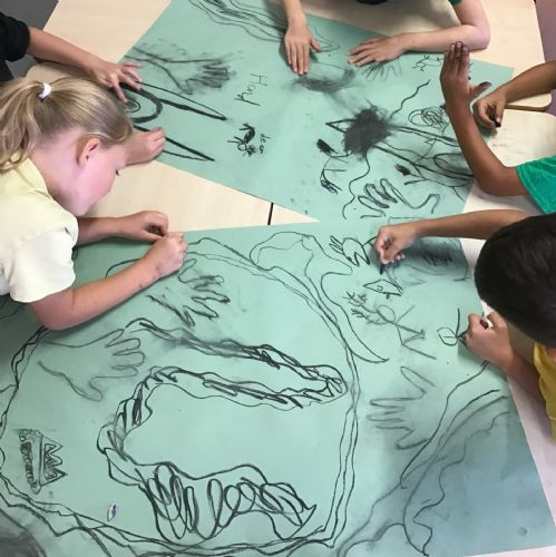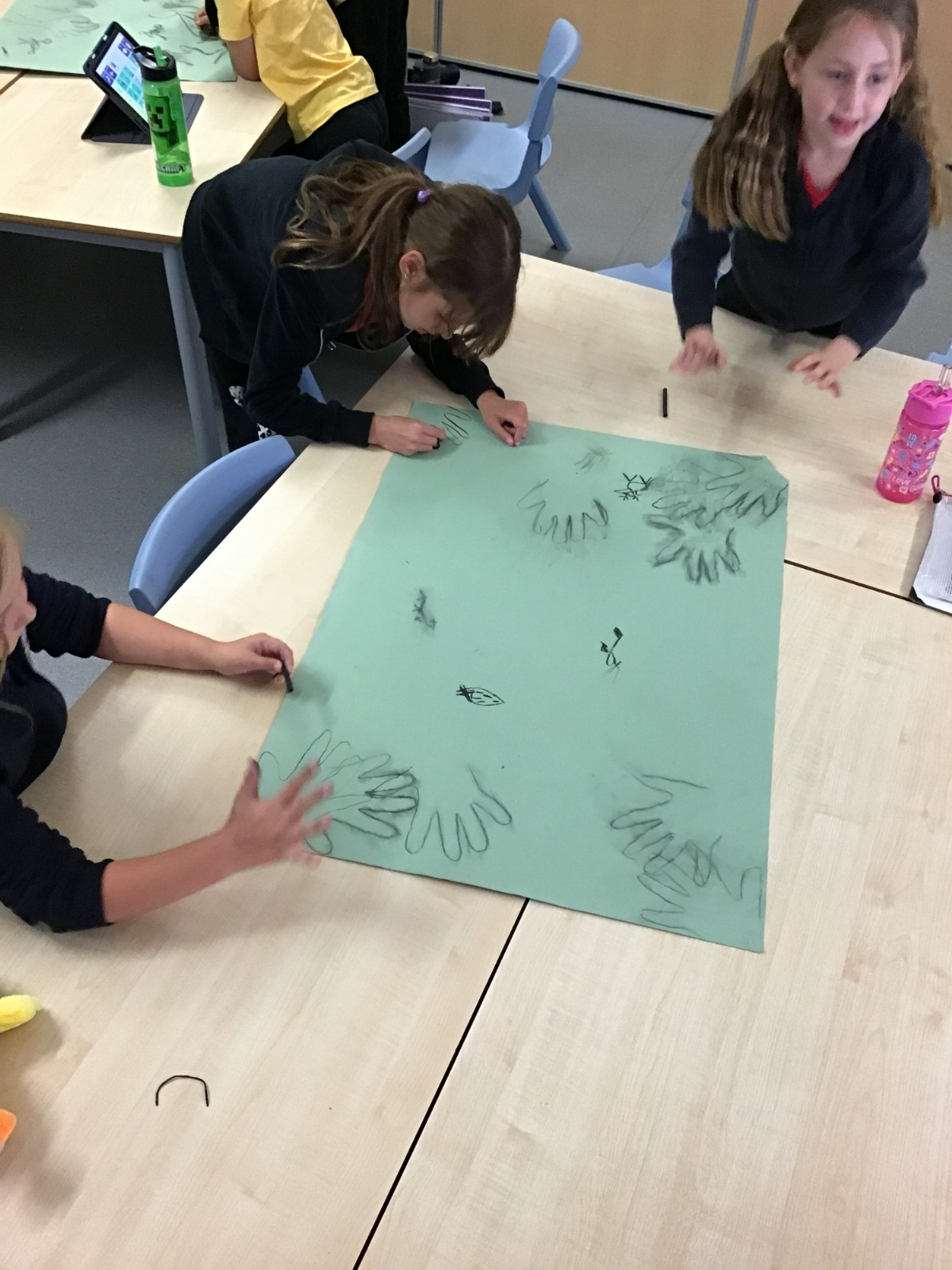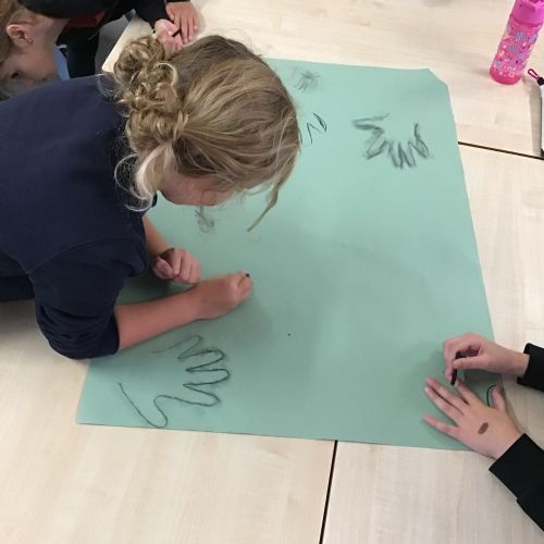 Using charcoal, we explored how to draw handprints, wild animals, and ancient settlements. We had lots of fun experimenting with charcoal as a drawing material and learning how it can be used to create bold, expressive artwork—just like the early humans did thousands of years ago!