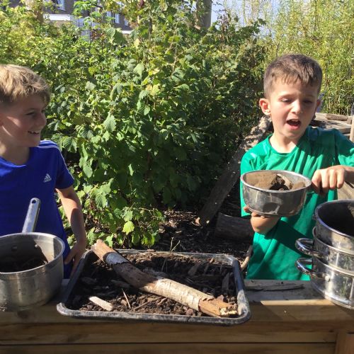 Year 4 children enjoying their time at the forest school. They build strong connections to nature and the environment. Children are persistent and work collaboratively with their friends to create games, solve challenges and to take measured risks.