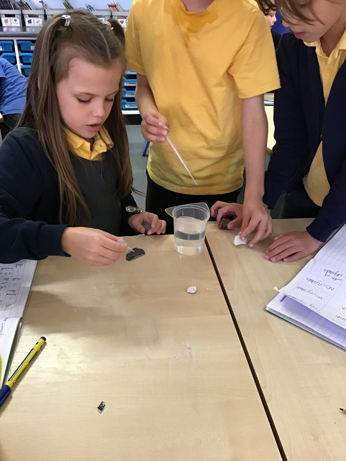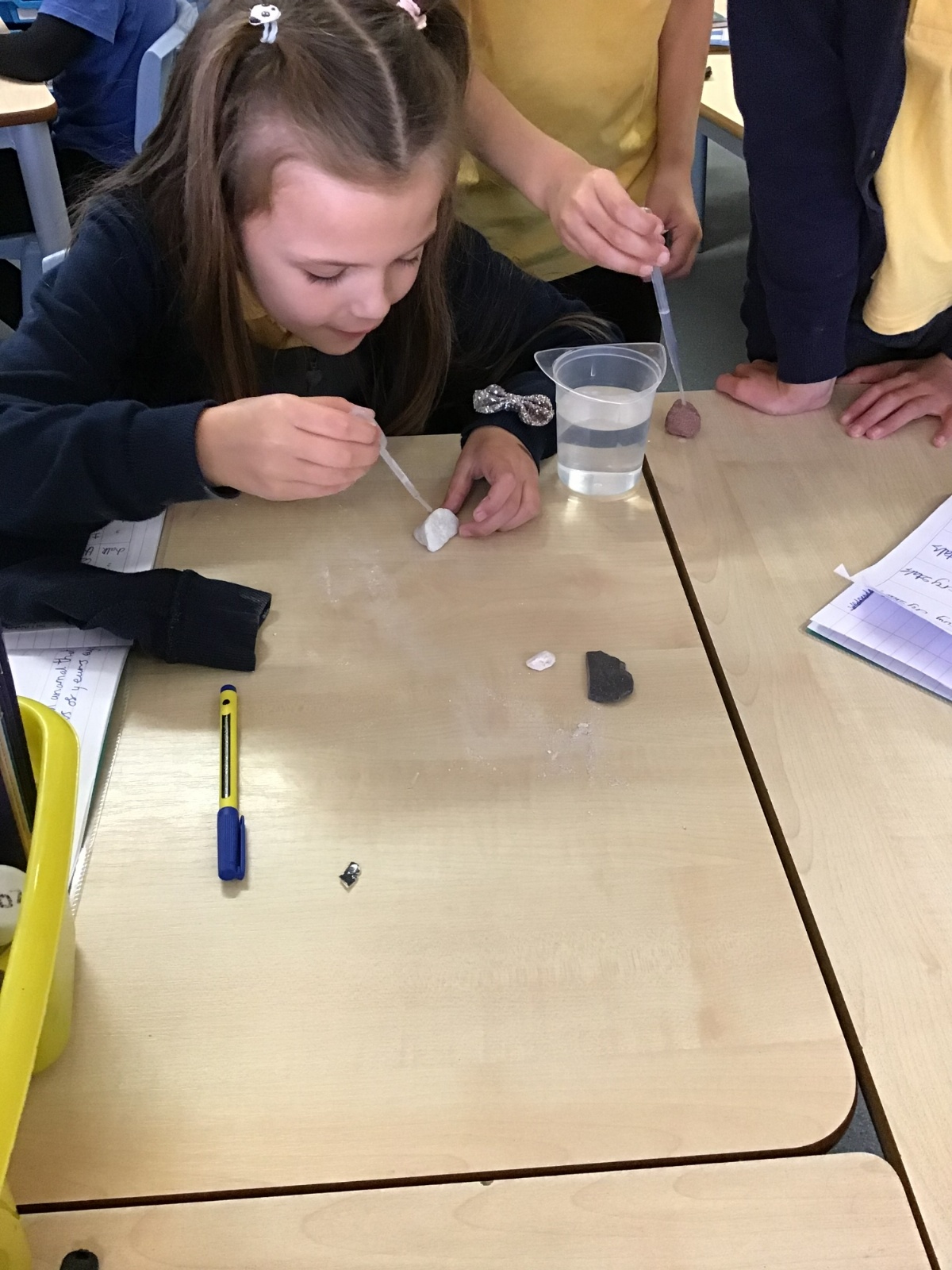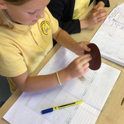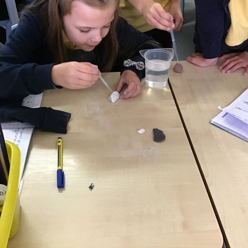 In science, Year 3 have been learning about the three main types of rocks: igneous, sedimentary, and metamorphic. To help us understand how these rocks are formed, we carried out some investigations. We tested the rock durability, permeability, density and looked carefully for any crystals embedded in the rocks.