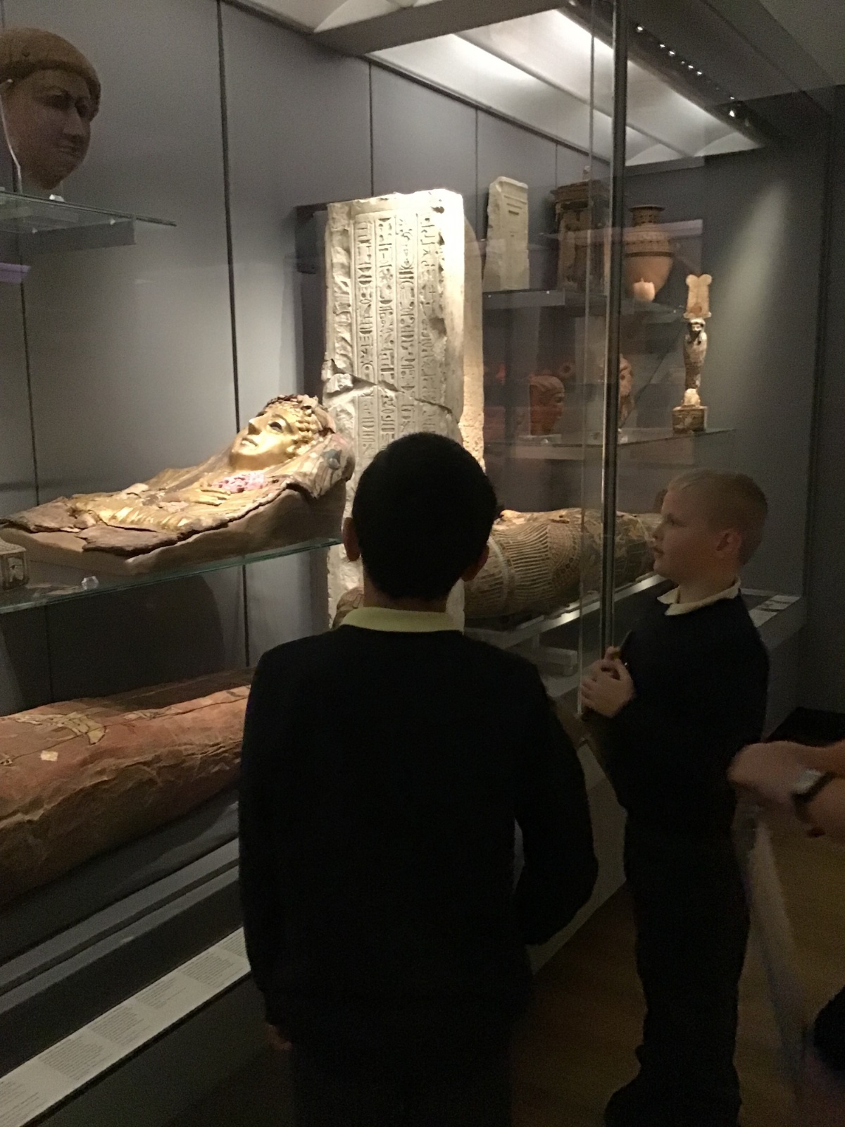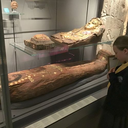 This term, Year 5 enjoyed an exciting trip to the Fitzwilliam Museum in Cambridge as part of their theme of Life and Death. Working with a museum educator, the children had the opportunity to explore fascinating objects from ancient Egyptian tombs, including learning about the impressive sarcophagus of Rameses III. They were captivated by the artefacts from life thousands of years ago. The class also had time to wander through some of the museum’s art galleries, where they admired a wide range of artwork from around the world.