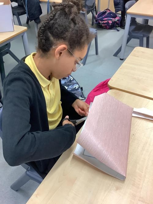 The children are all creating a book fold of their initial. This is involving following a pattern, measuring, marking and folding pages to millimetres!