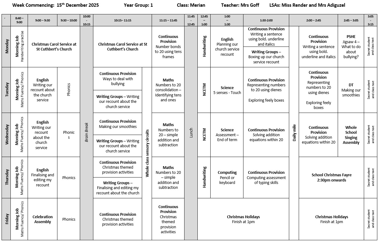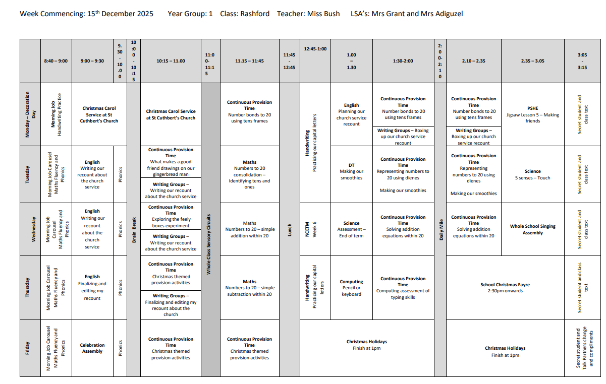 • Year 1 Timetables