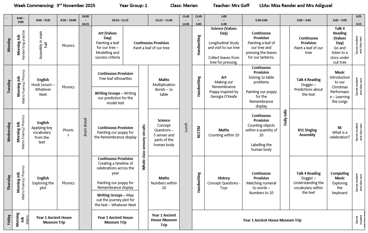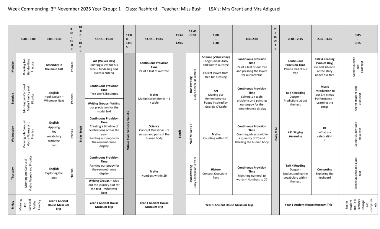 Week 1: Week Commencing 3rd November 2025-7th November 2025