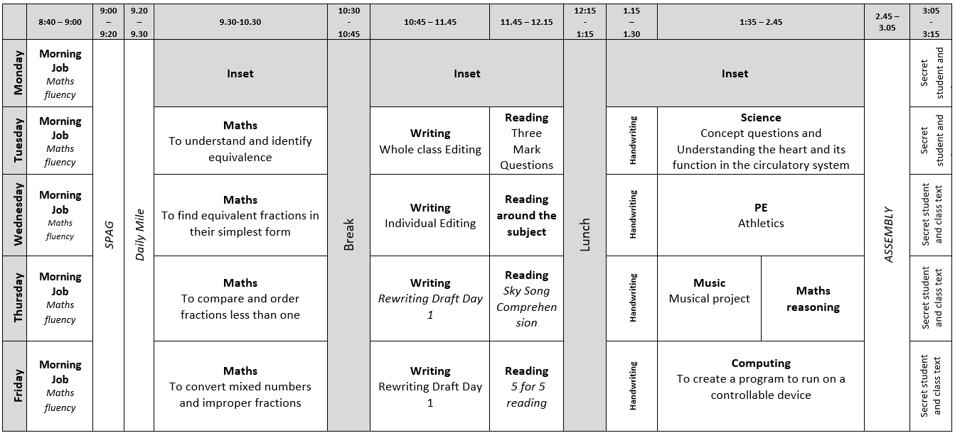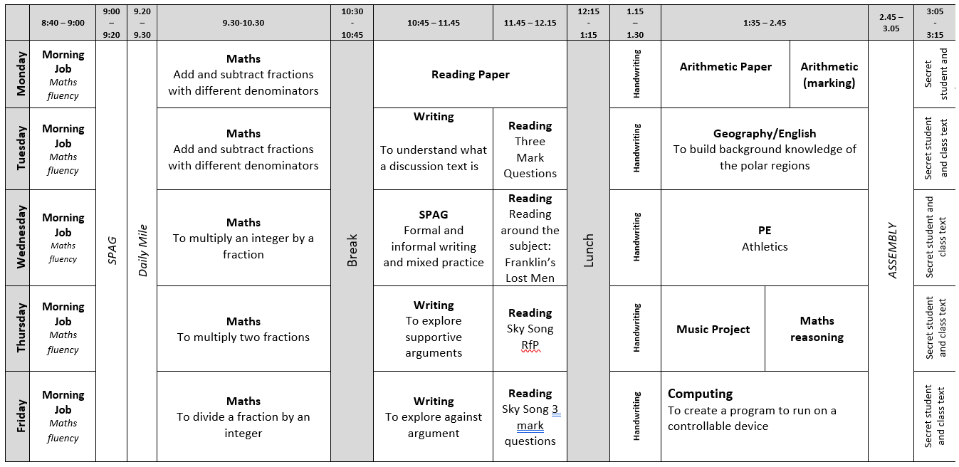 • Year 6 Timetables