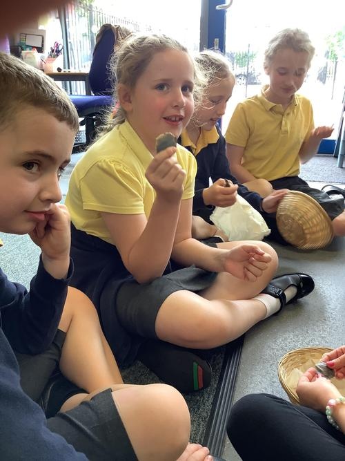 Year 3 visited Norwich Castle for an action packed day learning about 'The Mystery of Prehistory!' We went back in time to the Mesolithic where we acted out the daily tasks of hunting, gathering and cooking on a fire. We went forward in time to the Bronze Age where we learnt about bronze being made of copper and tin. We handled smelted Bronze Age tools and the different metal ores. We went forward in time again to the Iron Age, where we discovered the people had begun to farm and weave textiles. We came back to modern life where we had a go at archeology, and investigated Neolithic stone tools.
