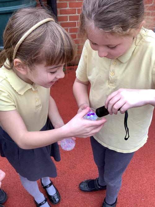 In our first Science lesson we were investigating the light and recogising that we need light in order to see things and that dark is the absence of light.