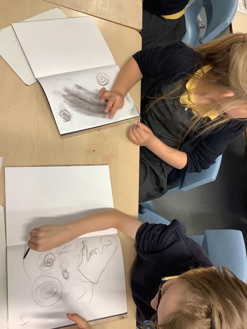 Art: We read Hansel and Gretel and imagined the gingerbread house. We thought about the shape of sweets and sketched lollies, candy, fizzy and chewy sweets!