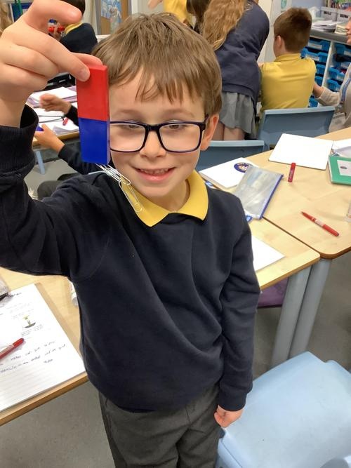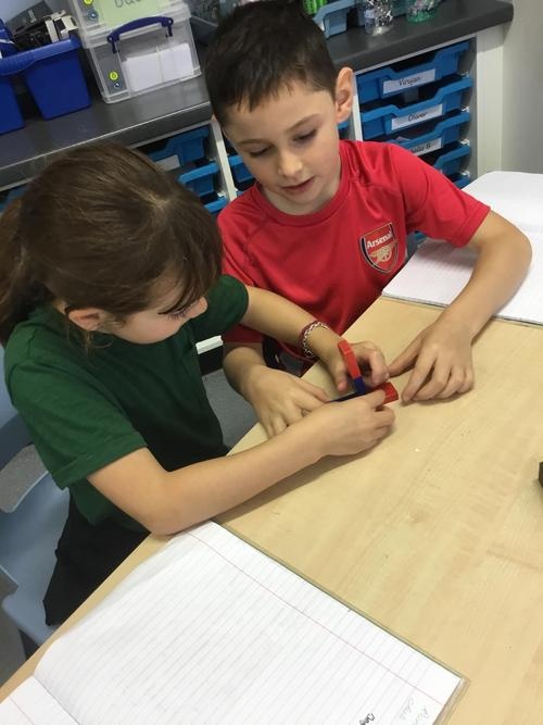 In Science we were exploring magnets. We found out that the magnet has two poles, a north pole and a south pole. They are called the north and south poles because if a bar magnet is able to rotate, the north pole will always point north and the south pole will always point south. We also explored what happens when magnets are put together. Will they attract or repel?