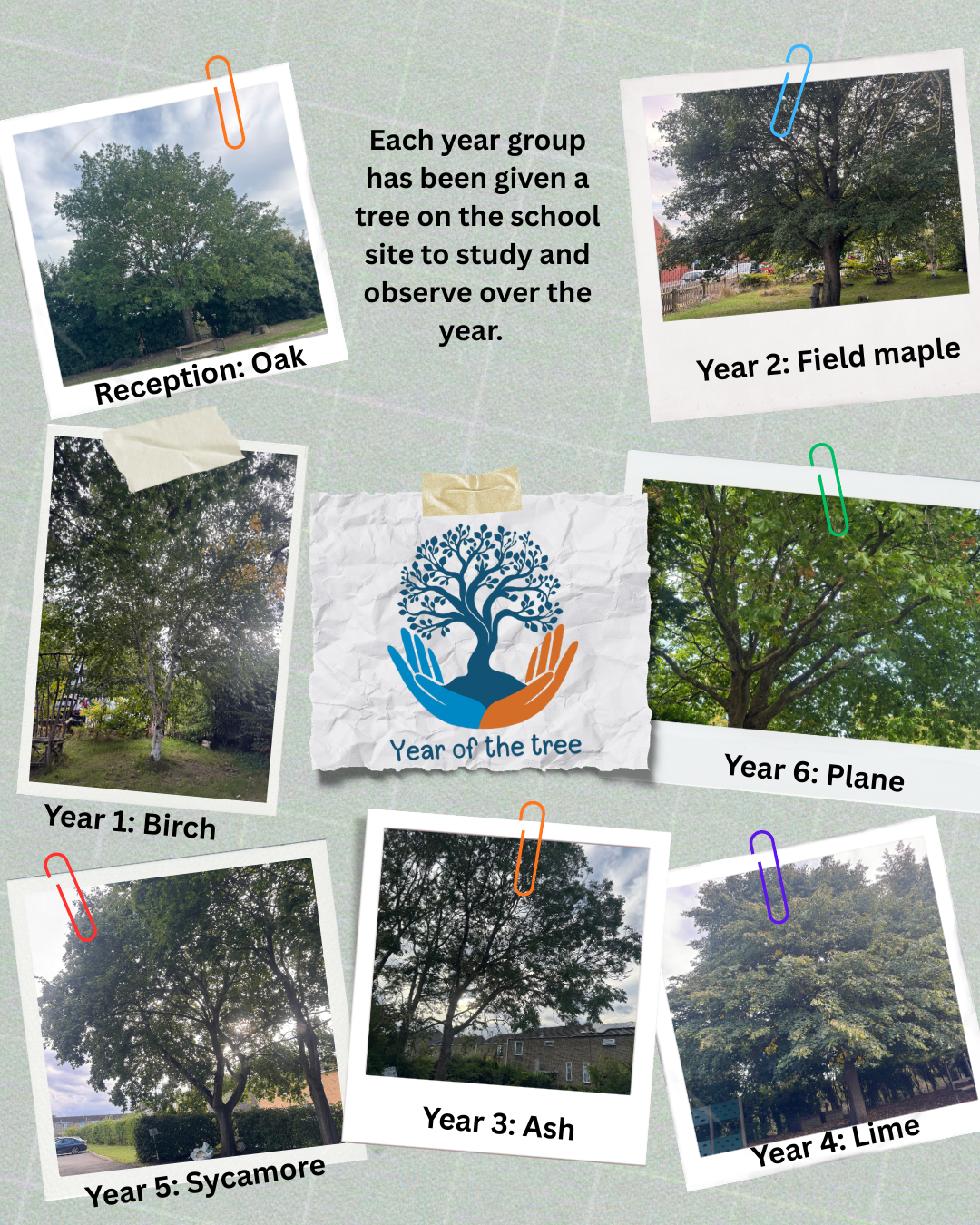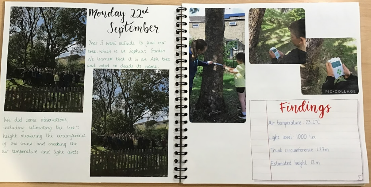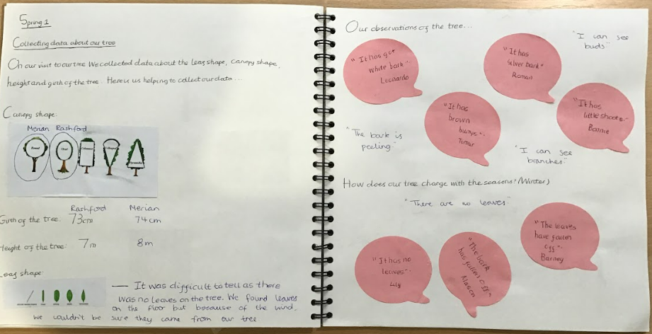 art and other activities. Each year group has been allocated a tree on the school site to study and observe over the year. Classes are undertaking a longitudinal study over the seasons, visiting their tree and collecting data.