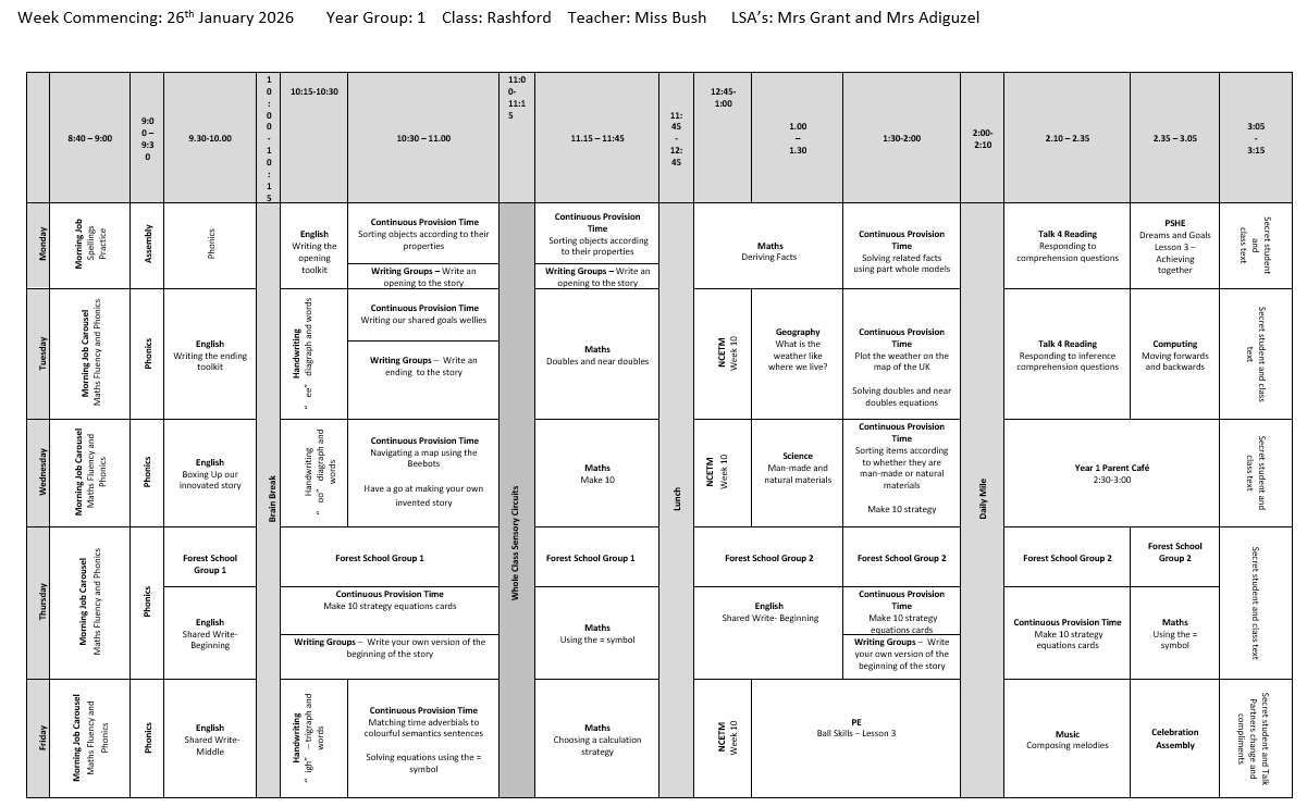 • Year 1 Timetables